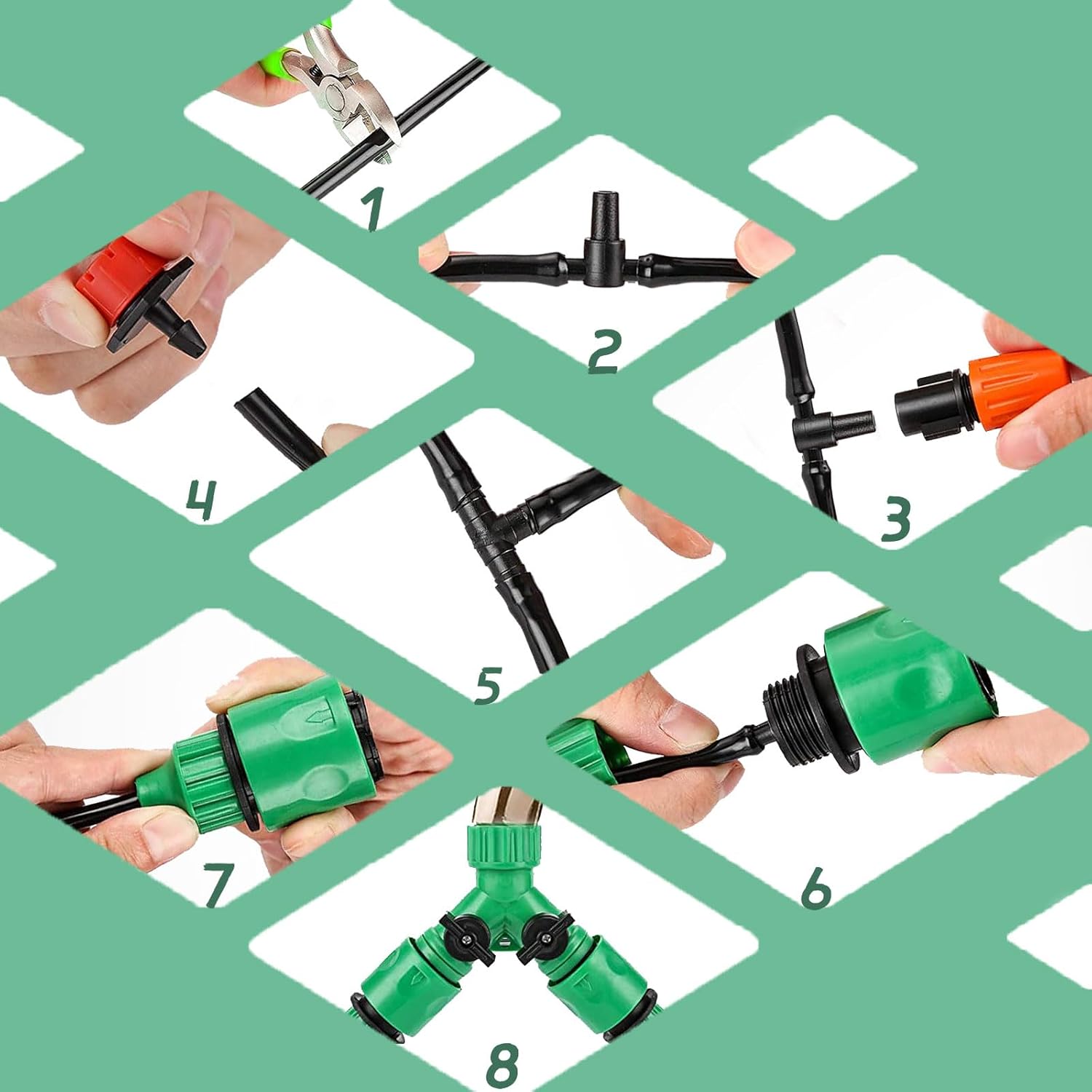 • Quick DIY Installation: Freeze-Resistant Durability Assemble in 15 minutes without tools using PE tubing and brass/stainless steel emitters. Features 10PSI pressure regulators to prevent leaks and 45PSI-rated pipes with winter drainage design for year-round reliability.