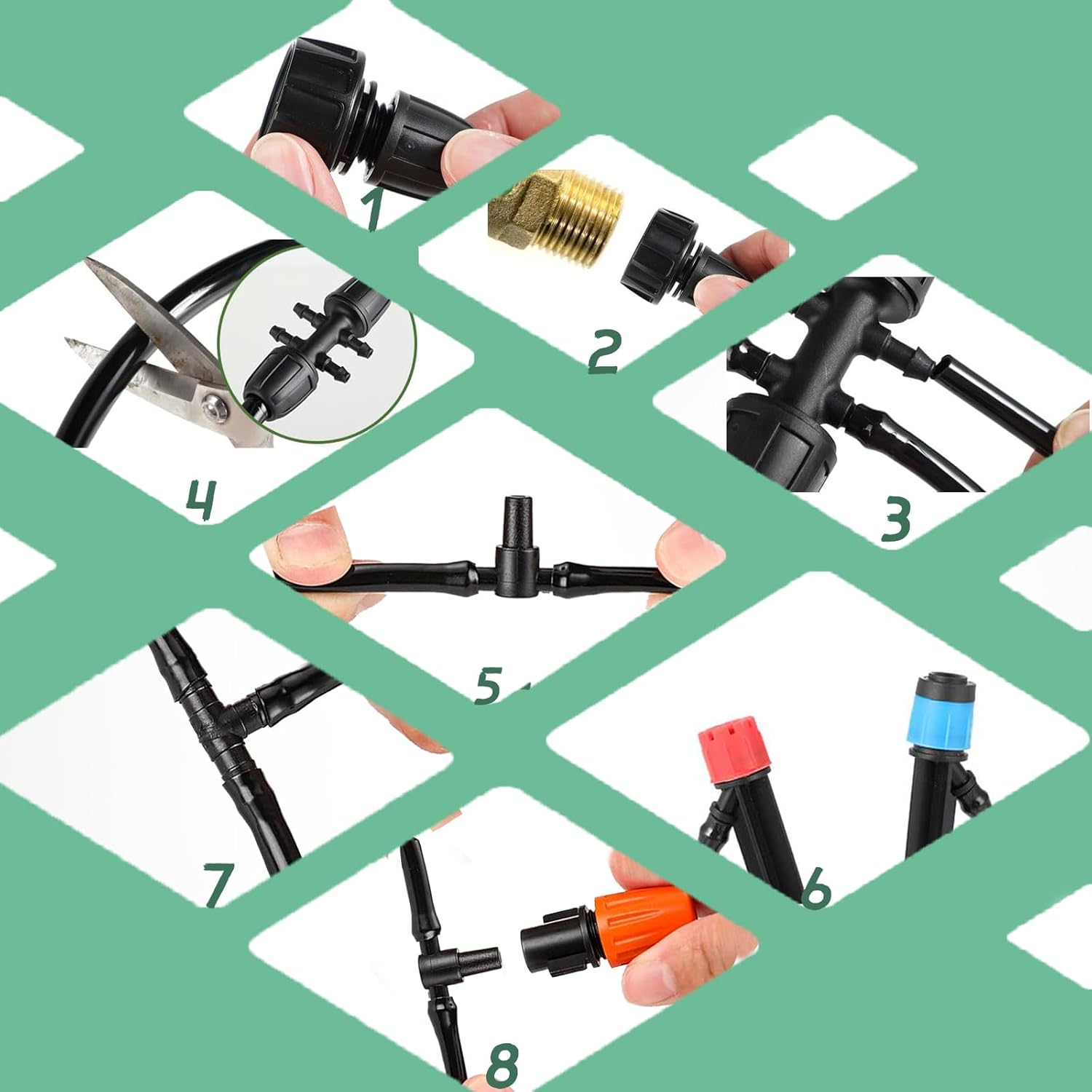 • Quick DIY Installation: Freeze-Resistant Durability Assemble in 15 minutes without tools using PE tubing and brass/stainless steel emitters. Features 10PSI pressure regulators to prevent leaks and 45PSI-rated pipes with winter drainage design for year-round reliability.