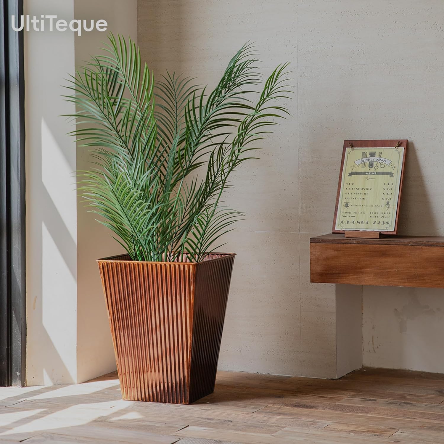 18in Vintage Handmade Metal Vertical Lines Copper Tapered Planters Set of 2, Galvanized Steel Planter Box with Drainage Hole for Indoor/Outdoor/Porch/Garden