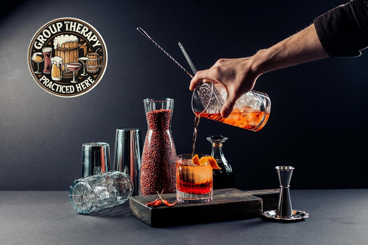 Vintage Beer Bar Art Poster Group Therapy Practiced Here Metal Sign for Home Decor Suitable for Man Cave Backyard or Bar Wall 8x8 In