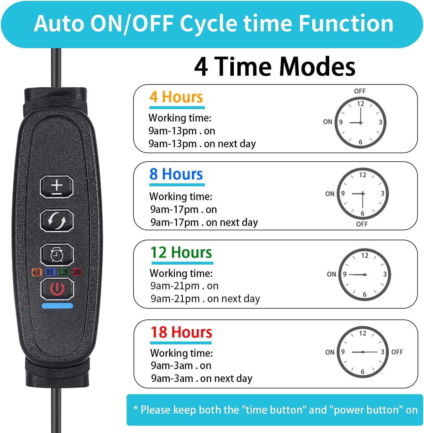 • 【Auto On/Off Timing Function】The plant grow light comes with a cycle memory timer function, which can Auto turn on/off every day according to your settings: 4/8/12/18 hours, the grow light will Auto turn on and off at the same time the next day, no manual operation is required, you can take care of your plants when you on work or vacation.