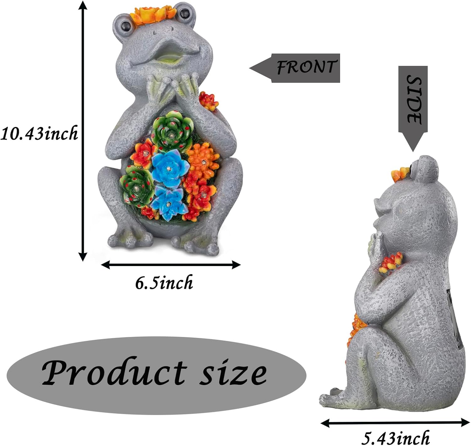 • 【Product Presentation】Frog Size: 6.5 "L x 5.43 "W x 10.43 "H. This frog figurines made of resin material, painted and finished with a UV resistant coating that can withstand heavy rain, snow or scorching sun without fading or rusting.