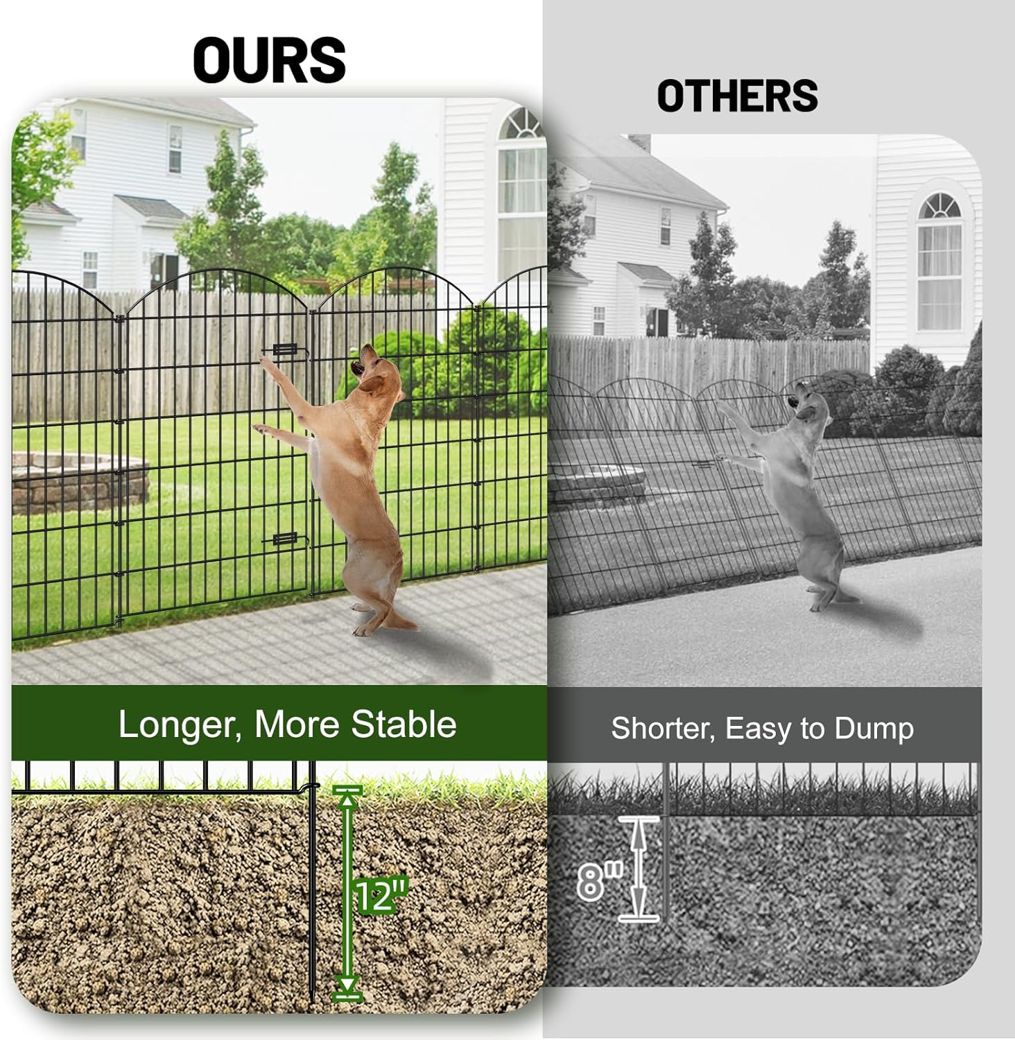 • STURDY AND STABLE: This garden gate and fences 48” tall is welded by Gauge 9 thickness iron wires, the stakes are 10mm in diameter, and can be extended pretty far into the ground which is fairly steady, it works well as a fence with gate for big or medium size dogs.