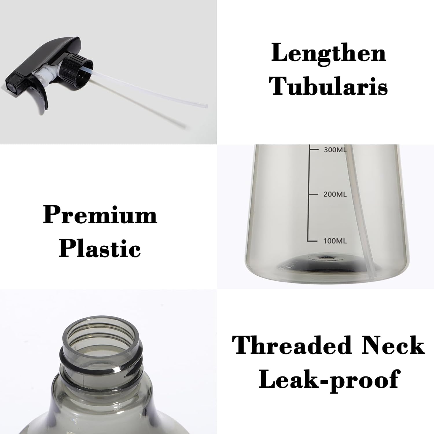 • FEATURES: Transparent , you can see how many liquid left clearly; safety buck and threaded neck prevents liquid from leaking efficiently; fine and homogeneous mist