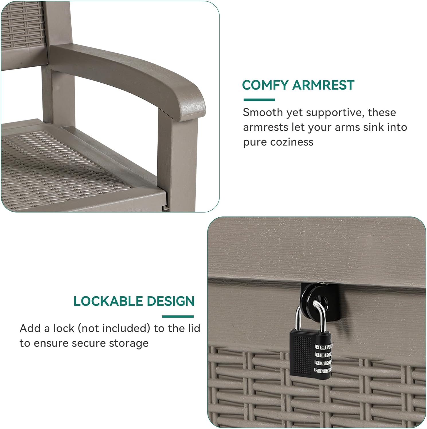 • Secure Storage: Lock up your items with this outdoor bench storage (padlock sold separately); Whether it's pool deck storage essentials or patio storage bench treasures, your items will be reliably kept while you're out and about