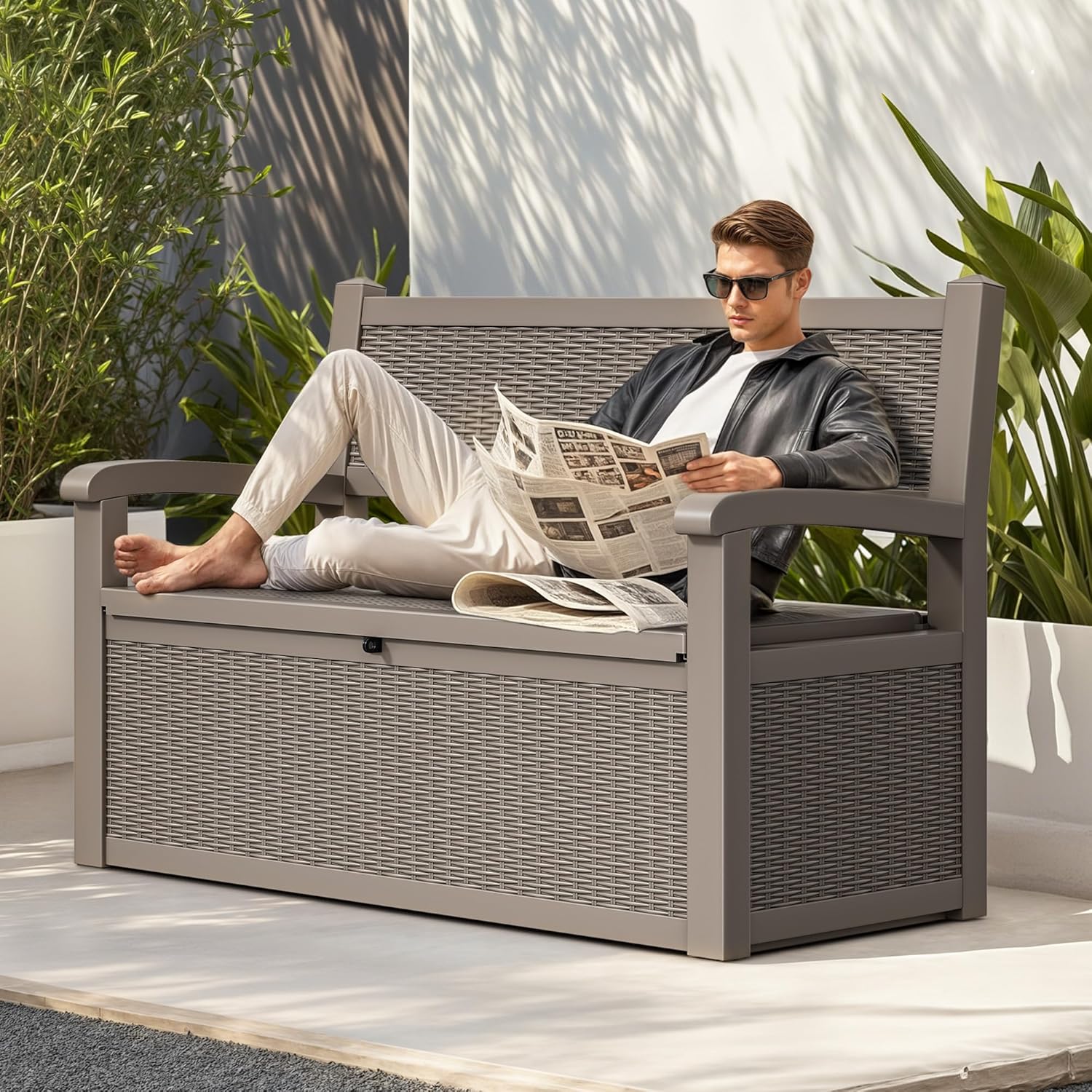 • Quick Assembly: Assemble this storage bench outside in just 30 minutes; Its stylish rattan finish effortlessly blends into any decor, adding a touch of sophistication to your deck or porch with minimal effort