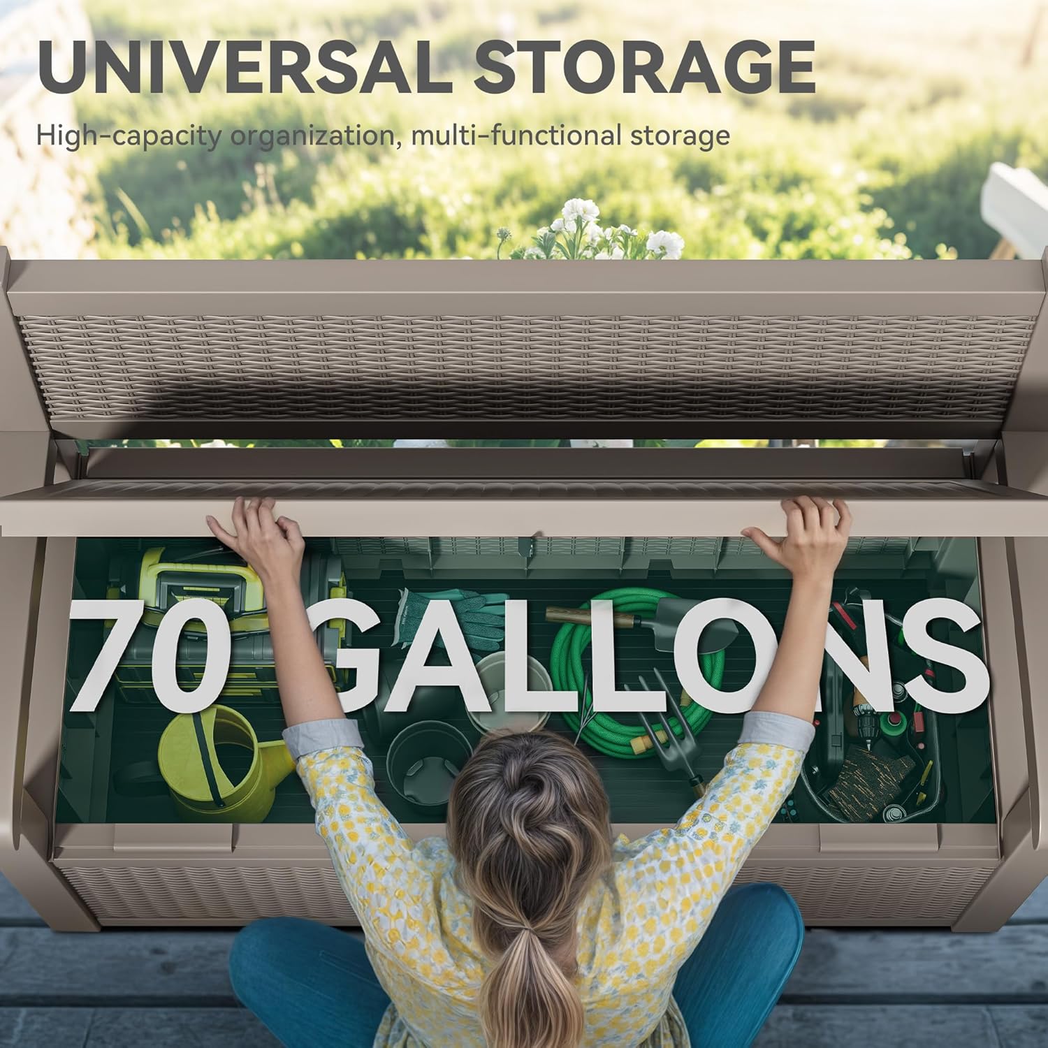 • Spacious Secret Stash: Reveal a generous 70-gallon hideaway under this storage bench outdoor, with internal dimensions of 46.6''L x 17.4''W x 12.9''H (external: 51.06''L x 24.2''W x 35.2''H), ideal for tucking away both indoor and outdoor essentials
