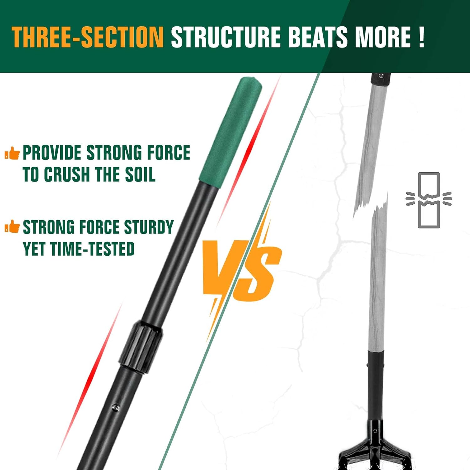 • REINFORCED&LONG-LASTING HANDLE BEATS MORE! ----- Built with solid steel and featured with reinforced 3-section designed, the handle of rotary cultivator tool ensure its sturdiness so it won’t bend after long-time use, the length are moderate, perfectly designed to fit your body, the extended handle of hand tiller cultivator won’t exhausted you after a long time working especially.