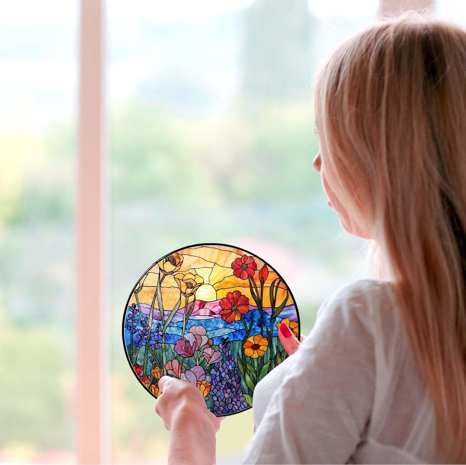 Wildflowers Sun Catcher Stained Glass Window Hanging Plant Lover Gifts for Women Wildflowers Wall Decor Handmade Sun Catcher Decoration for Garden Home Housewarming Gifts(6 inch)