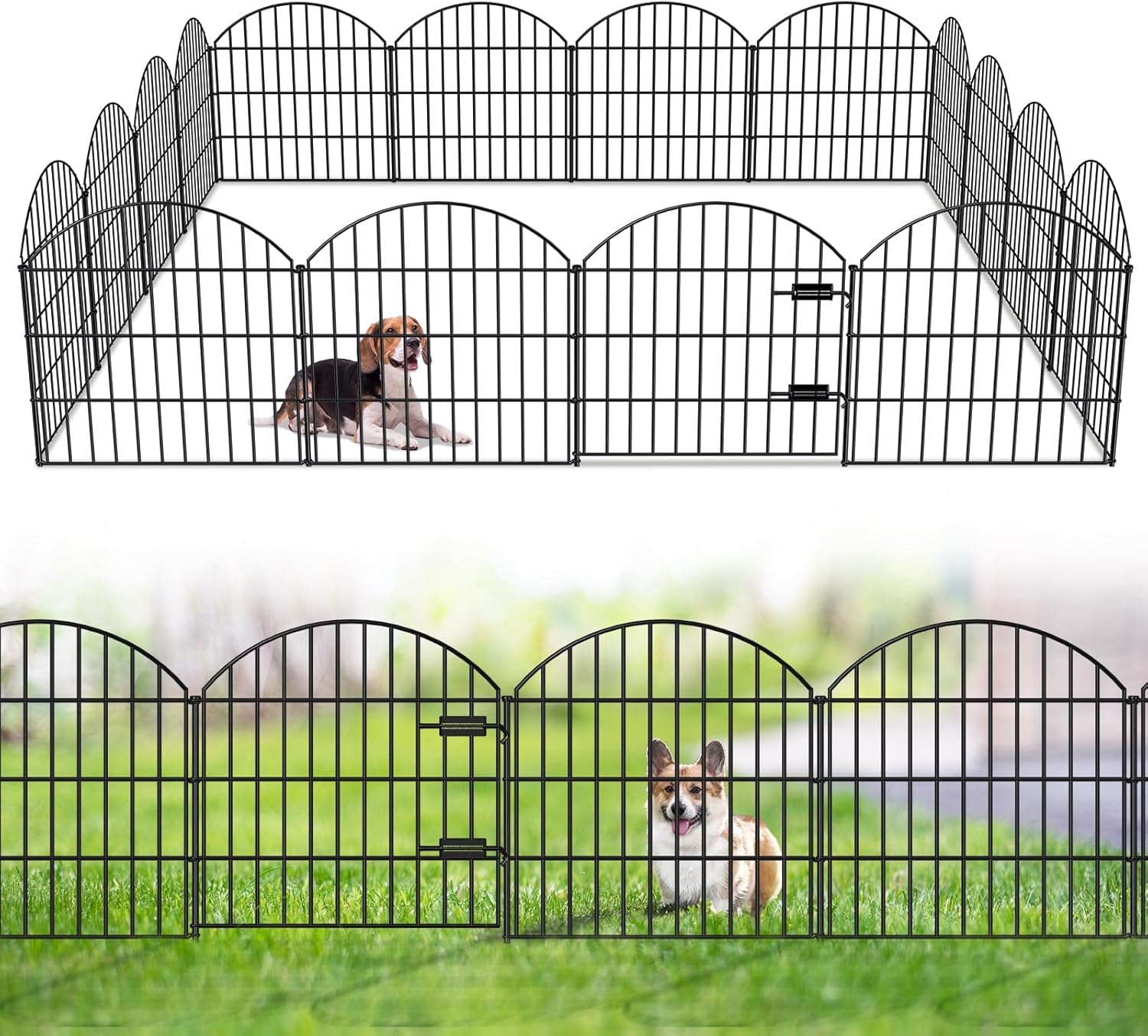• WHAT'S INCLUDED: 1 Gate + 15 Fence Panels + 17 Stakes in a bundle. Gate sized 27"(H) x 28"(W), each Fence Panel sized 28"(H)x28"(W), linear length 37.3 feet, Black color.