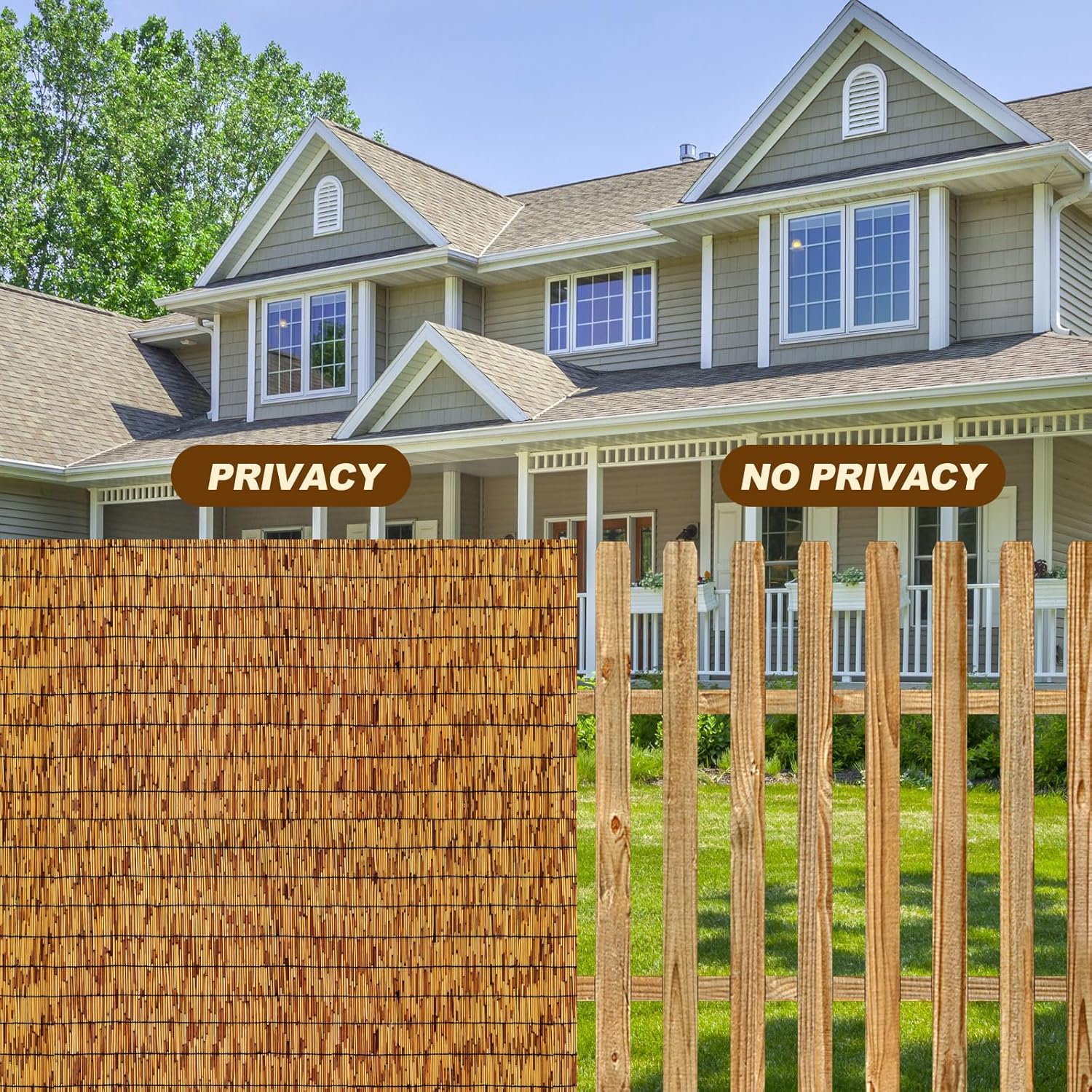 • Privacy Fence Screen:Reed Fences are Amazing in Color and Opacity,The Bamboo reed Fencing Blocks the sun and the view of Neighbours,In additionour reed privacy screen can help hide flawed walls,replace old fences,improve backyard/balcony privacy and even prevent pets from jumping out from the balcony