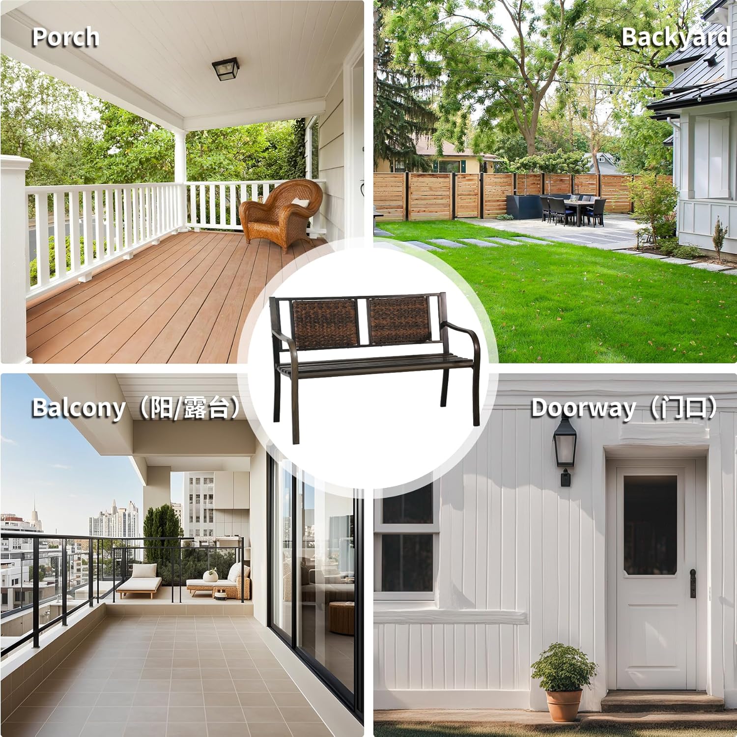 • Durable Iron Construction: Crafted from high-quality iron, this outdoor garden bench is built to last through years of outdoor use. Its sturdy design ensures maximum durability and stability, perfect for patio, parks, gardens or any outdoor space