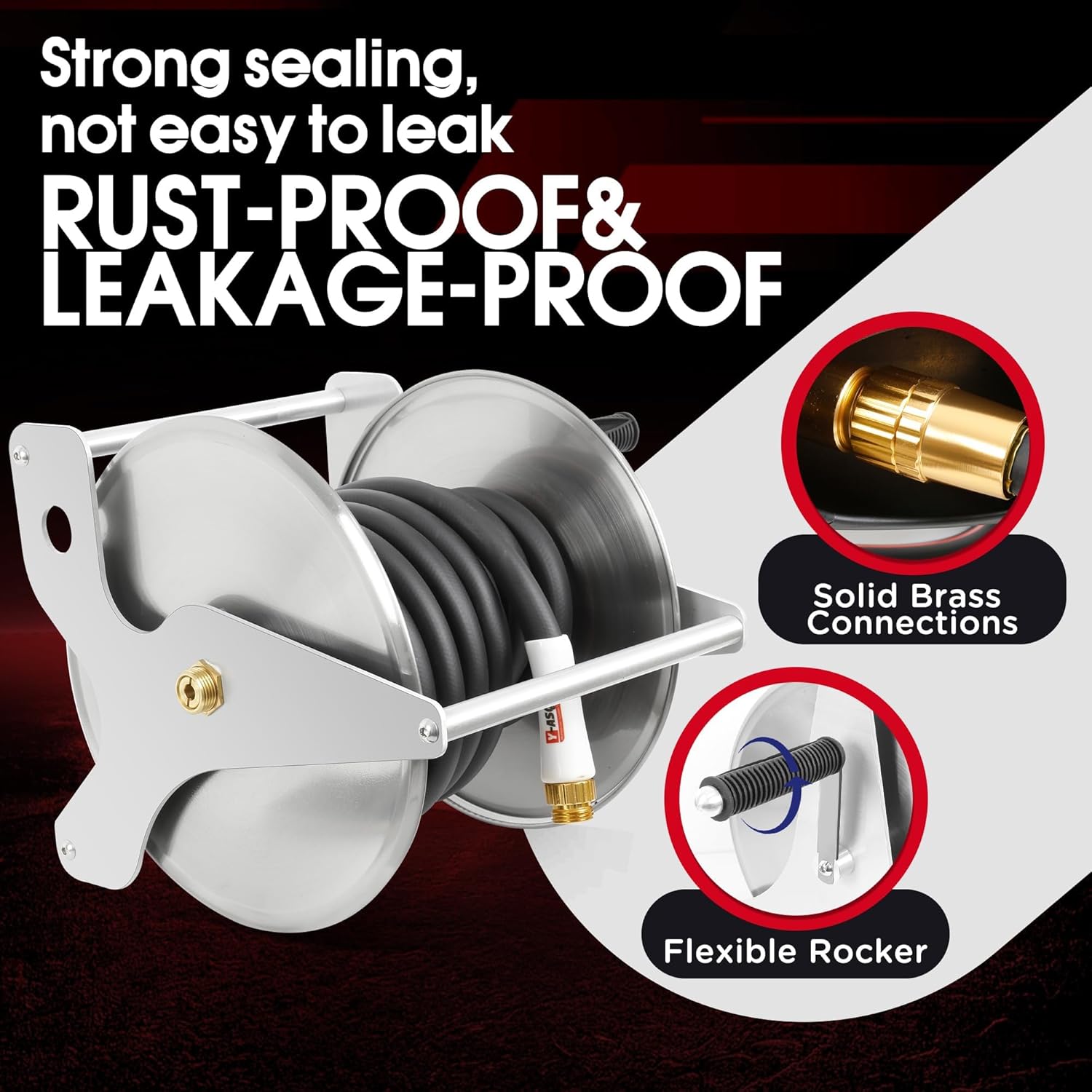 • DURABLE CONSTRUCTION: Premium stainless steel hose reel wall mount construction ensures long-lasting performance and weather resistance for outdoor use
