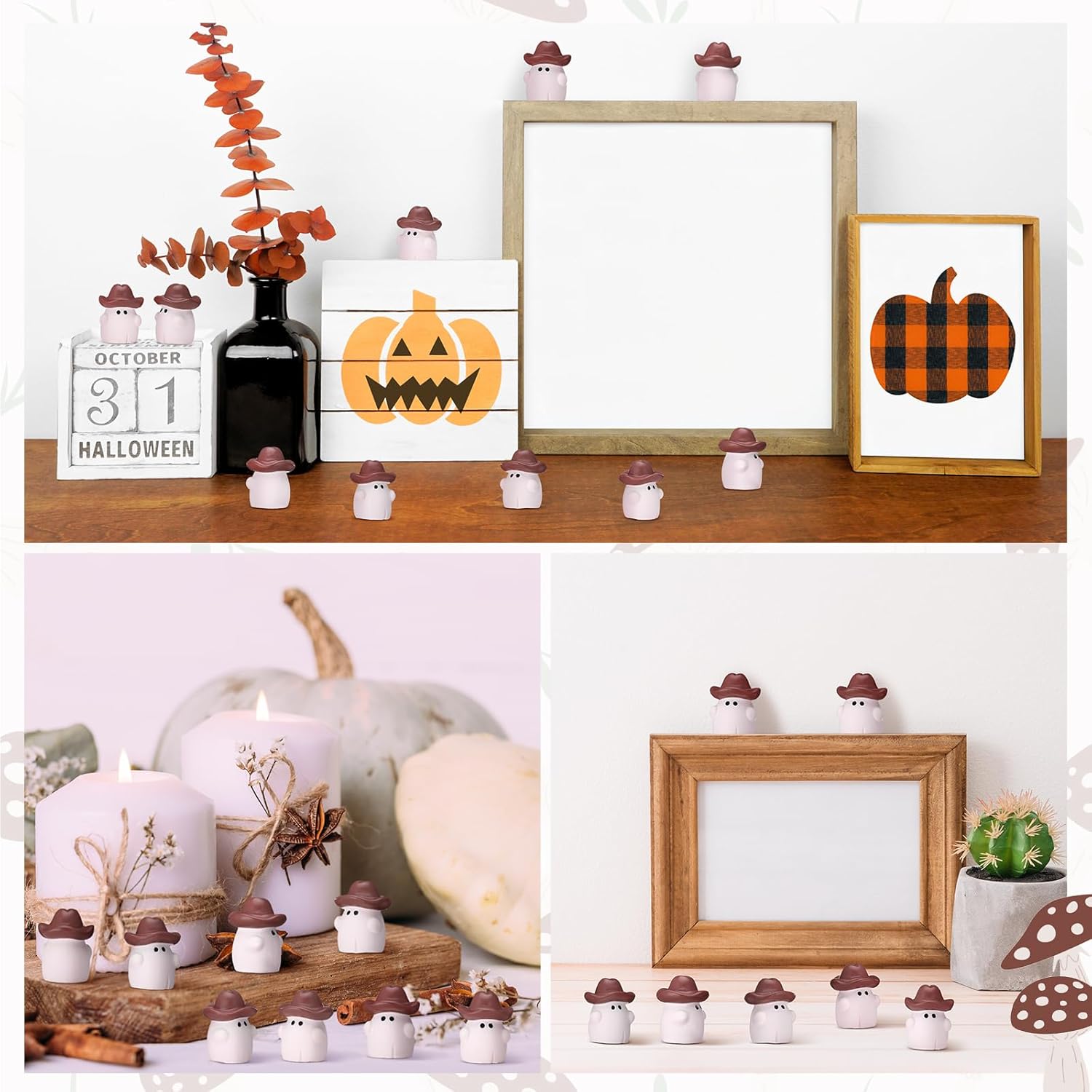 • Halloween Decoration: our package includes 50 pcs mini cowboy hat ghost which white ghost wearing brown cowboy hat, cute and funny, the quantity is enough to meet your needs, you can use these ghosts to decorate Halloween, or you can give them as gifts to your friends and family