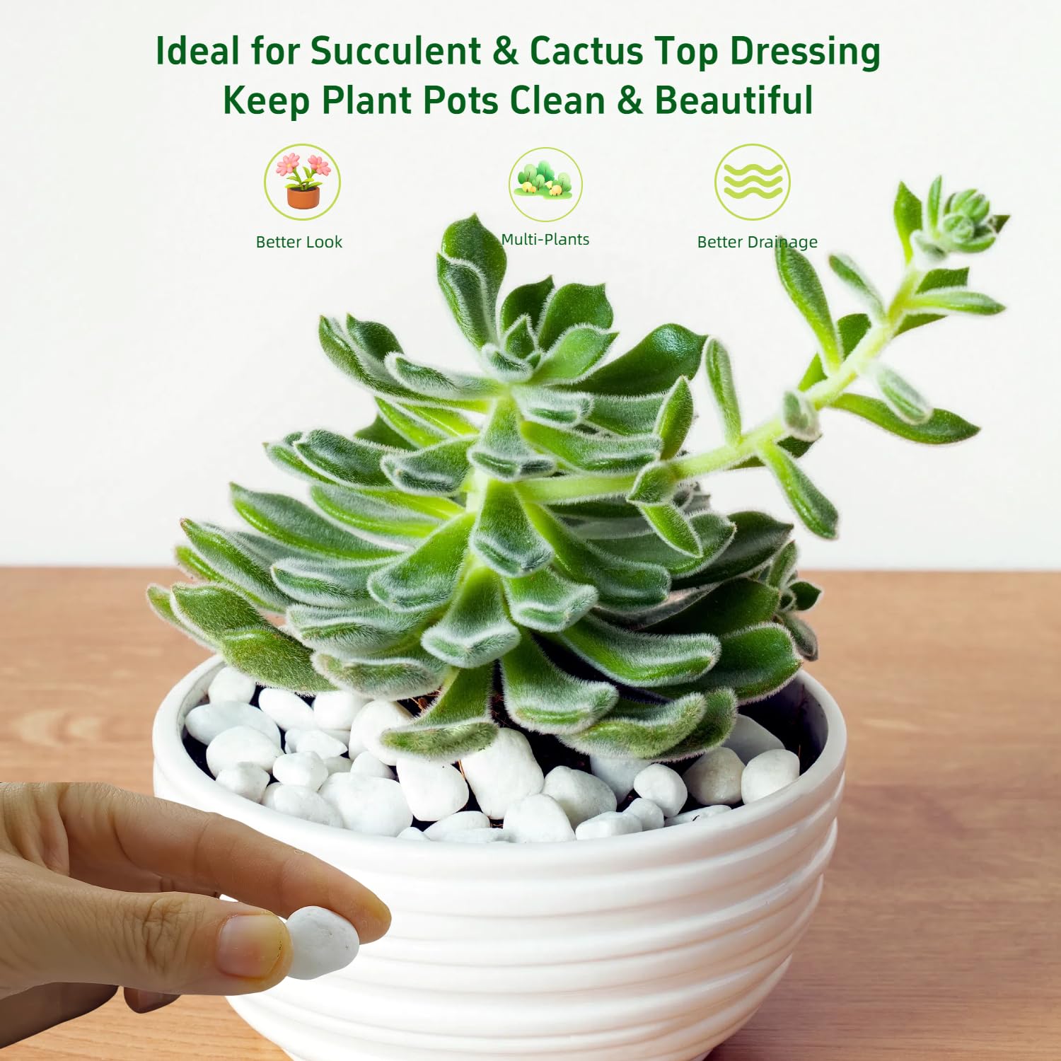 • 【Top Dressing for Succulents, Cactus & Potted Plants】 The small white pebble stones use as a protective top layer for succulents, cactus, and indoor potted plants. Great for balcony garden, indoor pots, and bonsai planters.