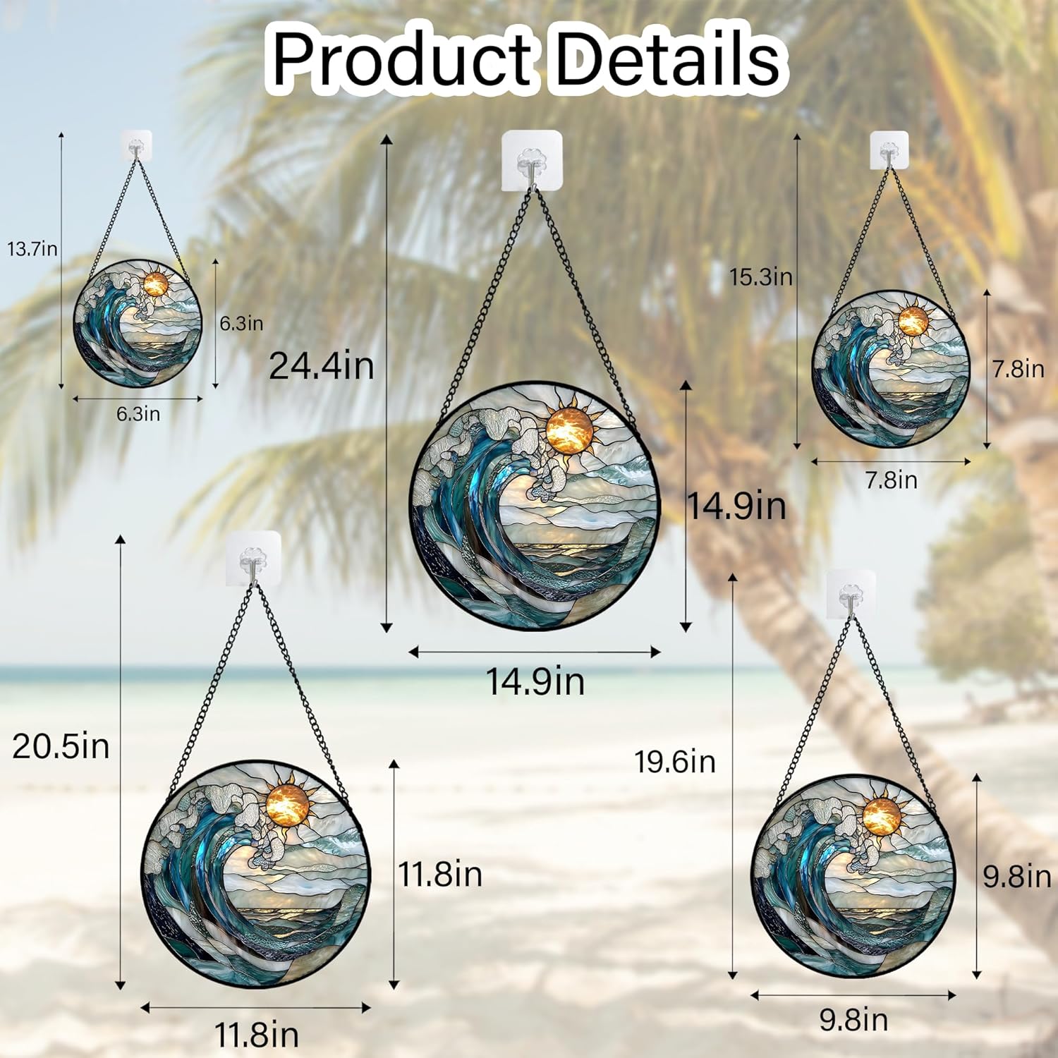 Stained Glass Window Hanging, Blue and White Waves Suncatcher Diamond Glass Panel Landscape Sun Catchers Decor for Birthday for Women, Men, Wife, Aunt, and Mom 14.9x14.9 in