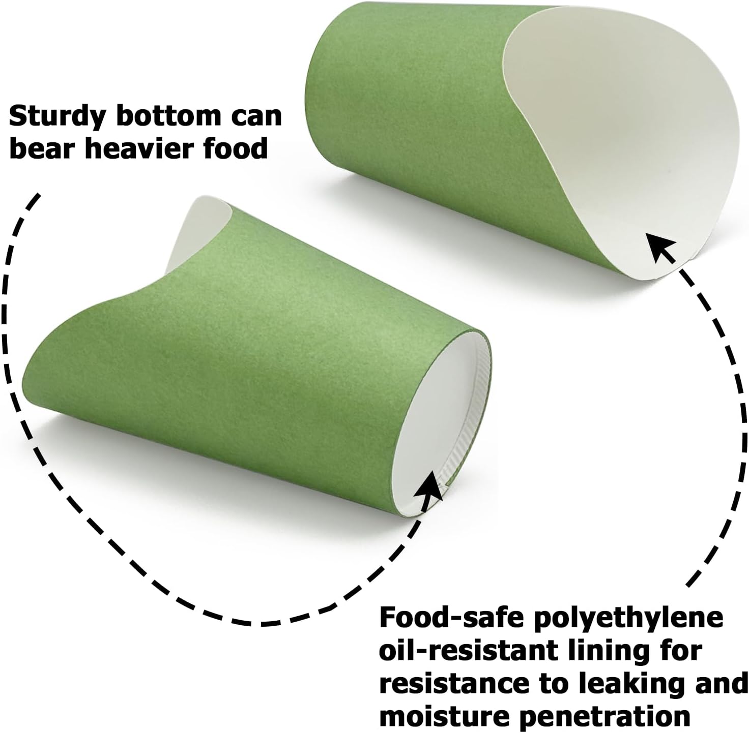 • [Resistance to Moisture Leakage and Penetration] - Each of sage green paper cups holder has food-safe oil-resistant lining for resistance to leaking and moisture penetration. Giving your customer or friends a delightful food cups packed with delicious without any greasy mess or embarrassing stains!