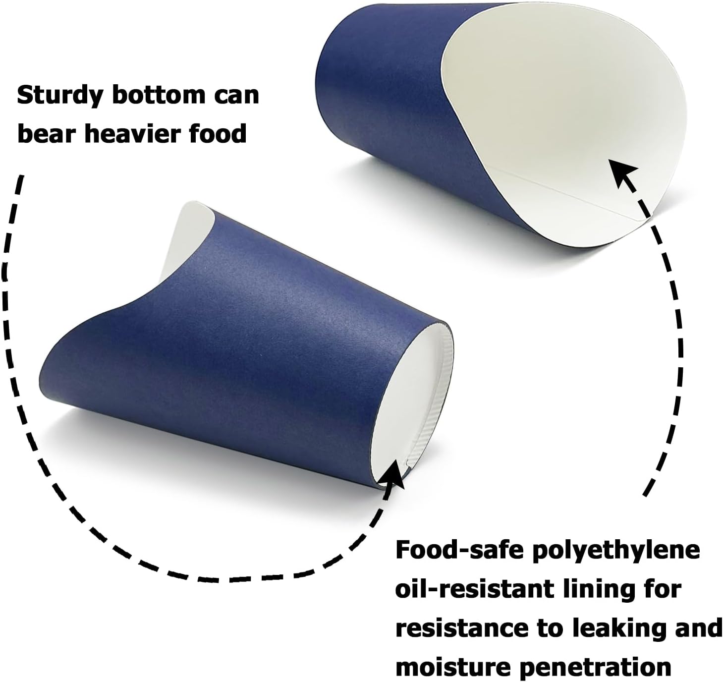 • [Resistance to Moisture Leakage and Penetration] - Each of navy paper cups holder has food-safe oil-resistant lining for resistance to leaking and moisture penetration. Giving your customer or friends a delightful food cups packed with delicious without any greasy mess or embarrassing stains!