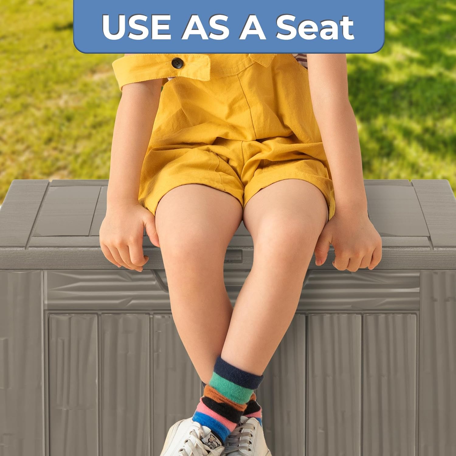 • Weatherproof Resin for Year-Round Use. Durable, waterproof resin, this deck box resists rain, sun, and UV exposure. Ideal for all-season use, it won’t peel, rust, or warp like wooden or metal boxes—keeping your items protected outdoors.