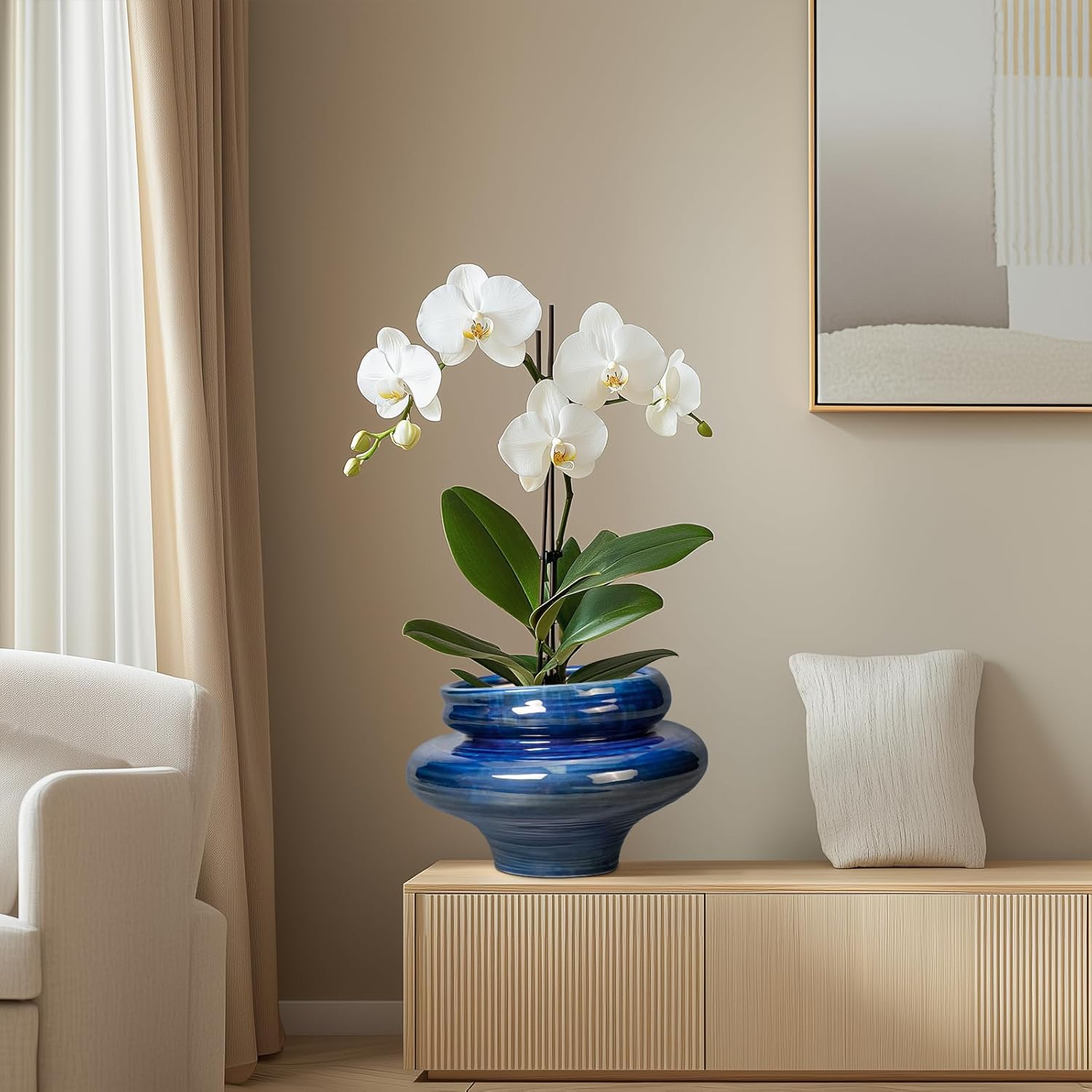 • Suitable for Various Plants: The blue planter can grow a variety of plants, including snake plant, succulent, bonsai tree, olive Tree, lavender plant, money tree, aloe vera plant, monstera, palm tree, Pothos, eucalyptus plant, cactus, orchid, lucky bamboo, spider plant, ZZ plants, peace lily plants, ficus tree, dracaena plant, agave plant and other plants