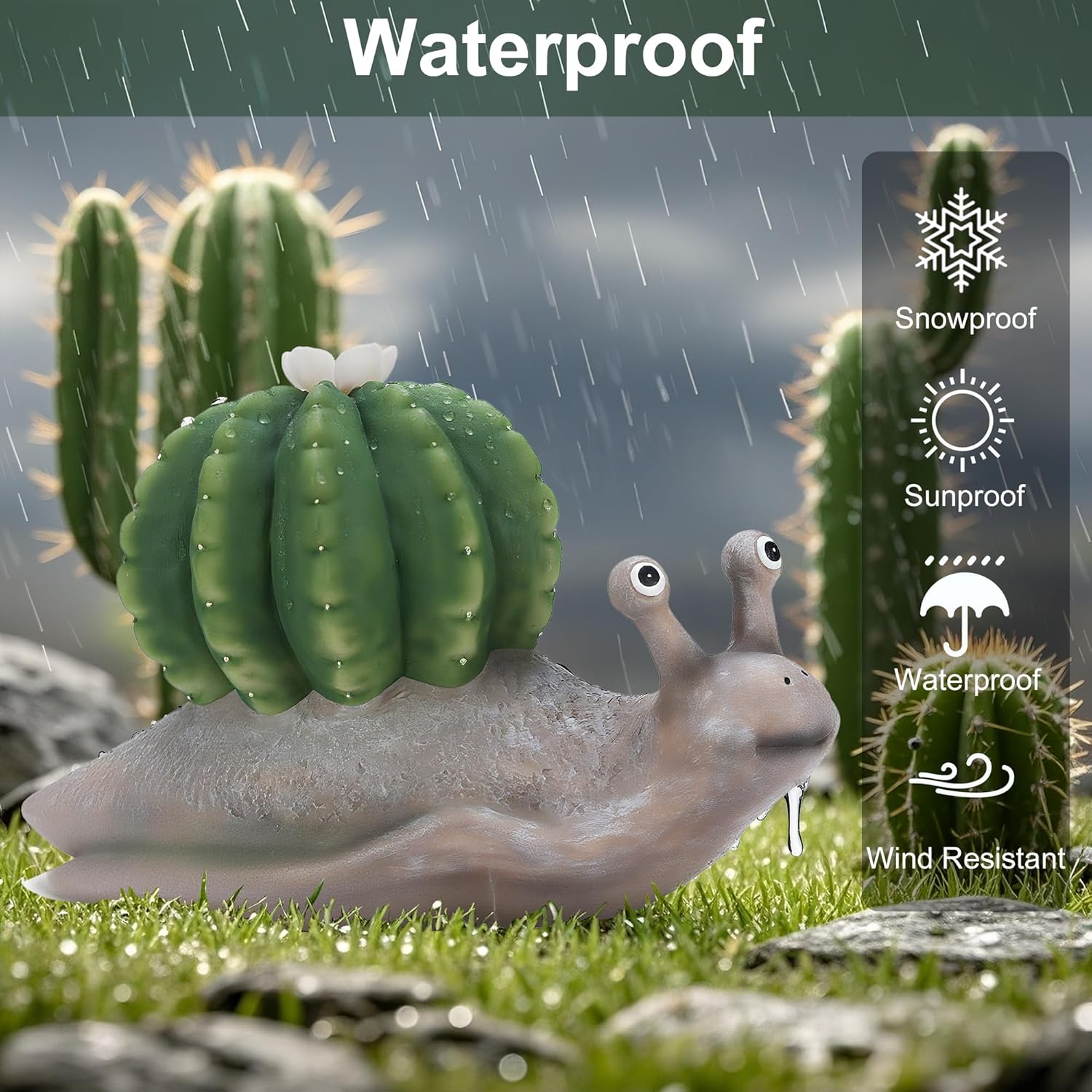 • Outdoor Garden Decor: Perfect for placing in your garden, courtyard, porch, lawn, and more—let this cactus-toting snail brighten up your garden!