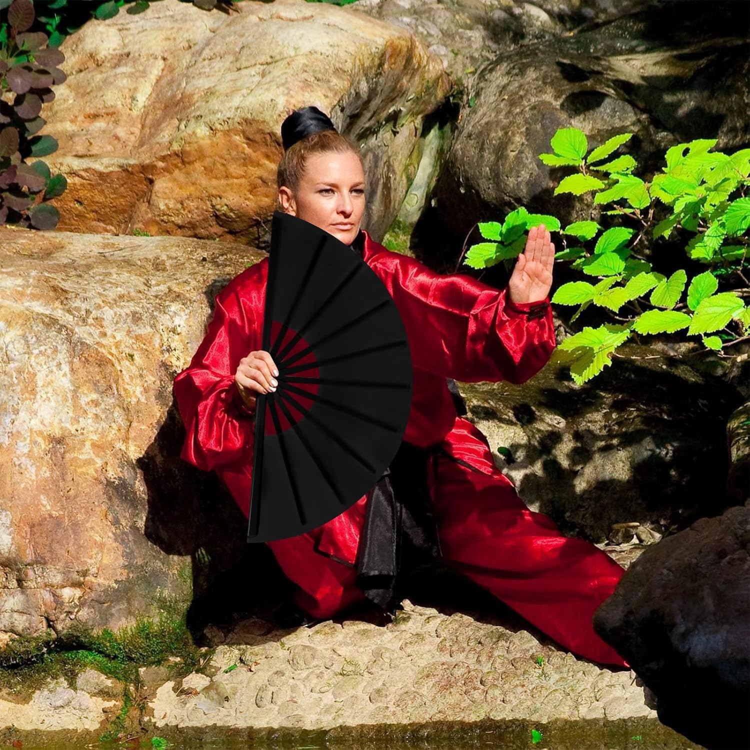 Maitys 20 Packs Large Clap Fans for Line Dancing Large Chinese Folding Hand Fans for Men and Women, Festival, Tai Ji, Kungfu, Martial Art, Gifts (Black)