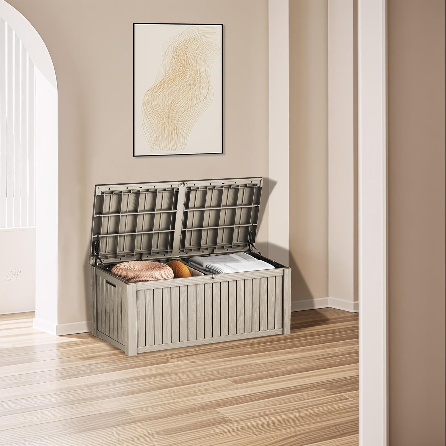 • Large Capacity: This 180-gallon deck box offers ample storage space for your outdoor accessories, and it has a 1200-pound weight capacity and can be used as a separate patio seat or indoor table.