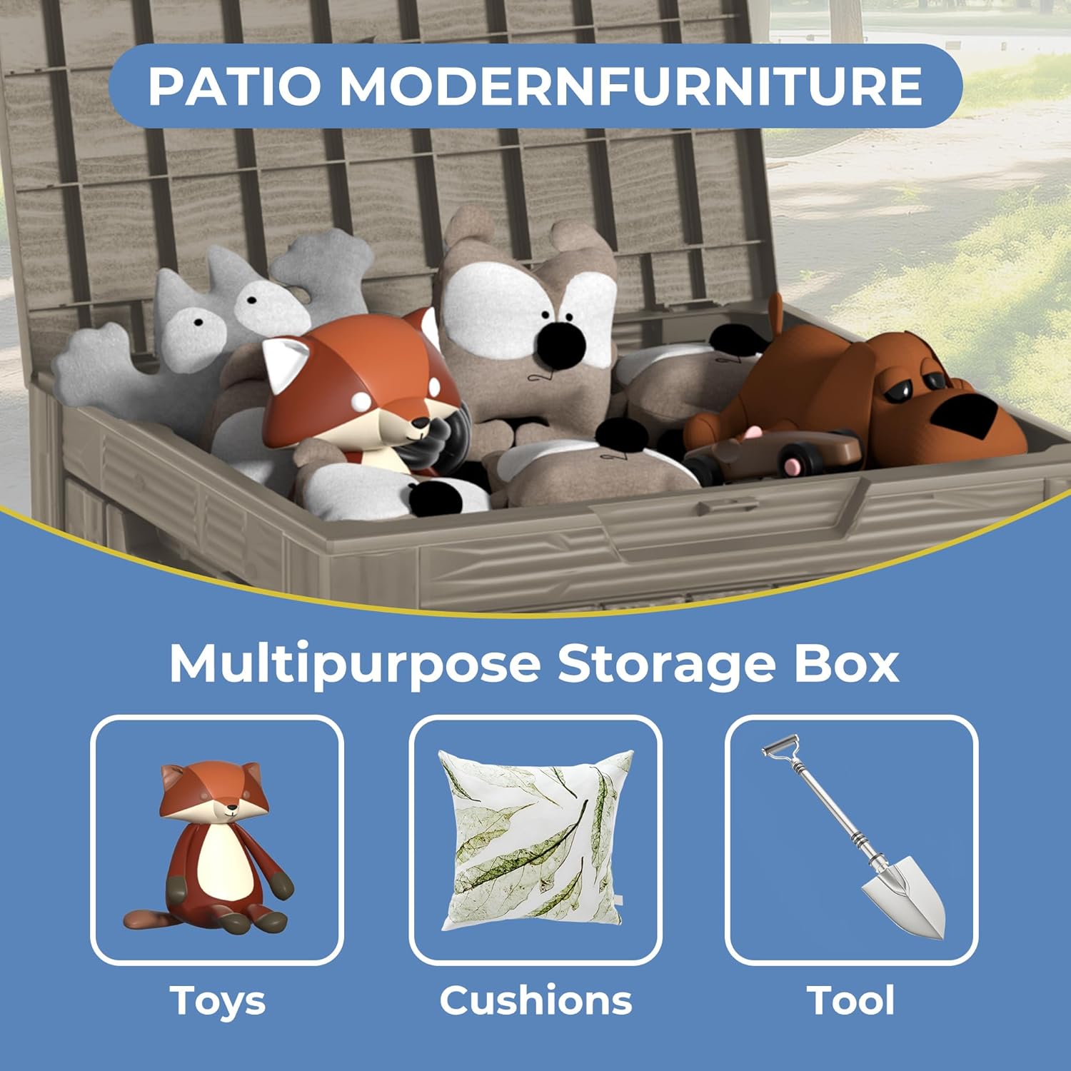 • Versatile Storage with Large Capacity Our deck box offers an impressive storage capacity, perfect for organizing patio cushions, gardening tools, pool accessories, and more. This multipurpose storage solution not only helps keep your outdoor space tidy but also functions as a bench or table. Whether in your backyard, by the pool, or on the patio, this deck box is designed to meet your every need.