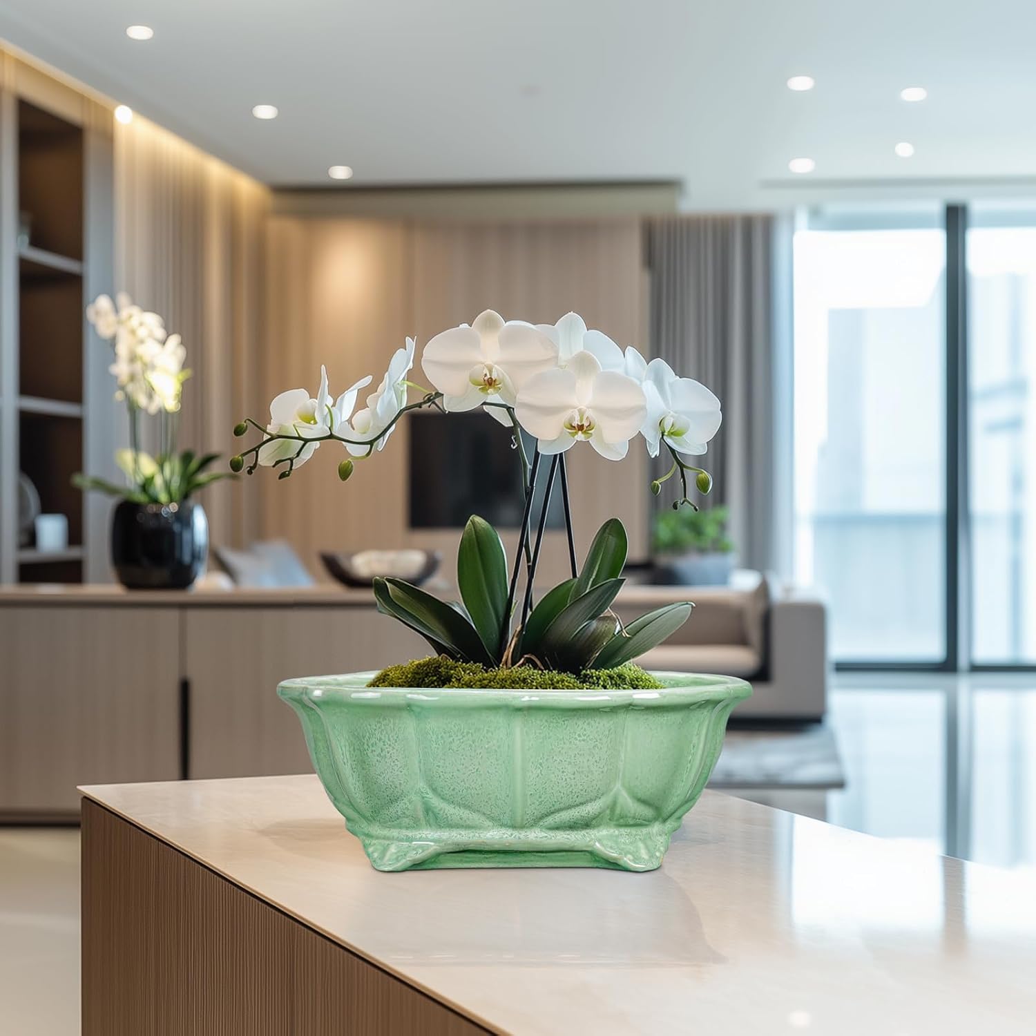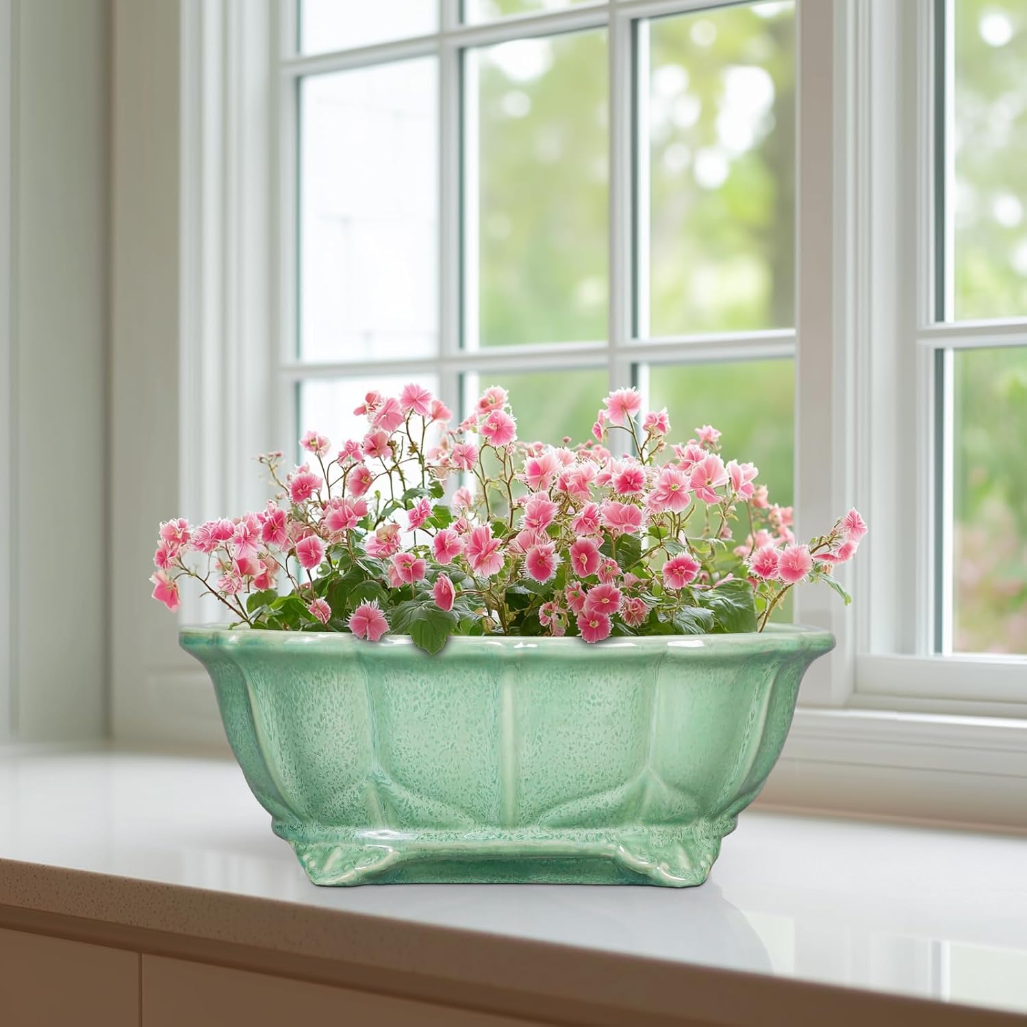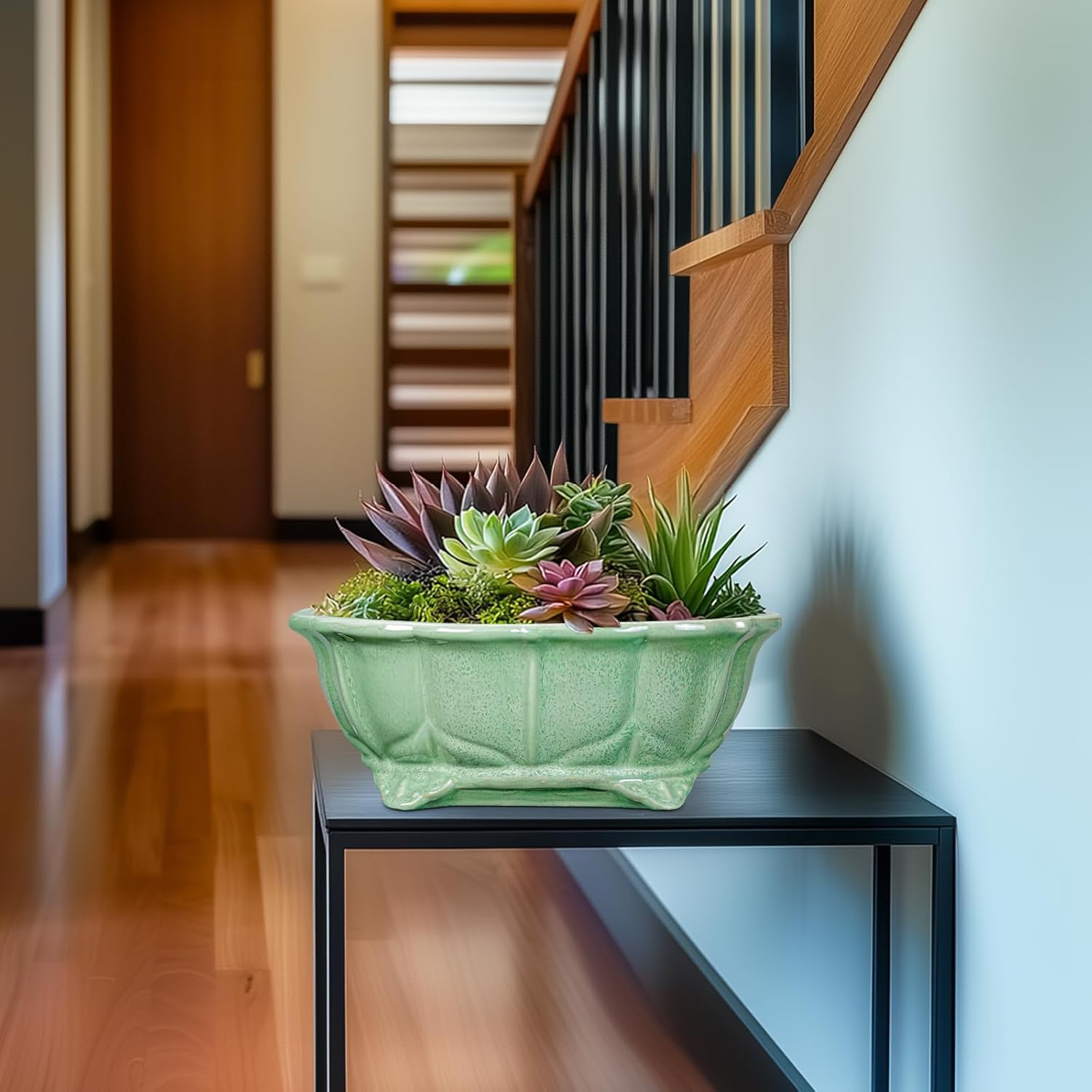 • Planter Size: Our ceramic plant pot is 11.0'' X 7.4'' X 4.1''. Packaging Includes: a ceramic planter, a drainage net. Thoughtfully packaged to ensure your bonsai planter arrives in complete condition