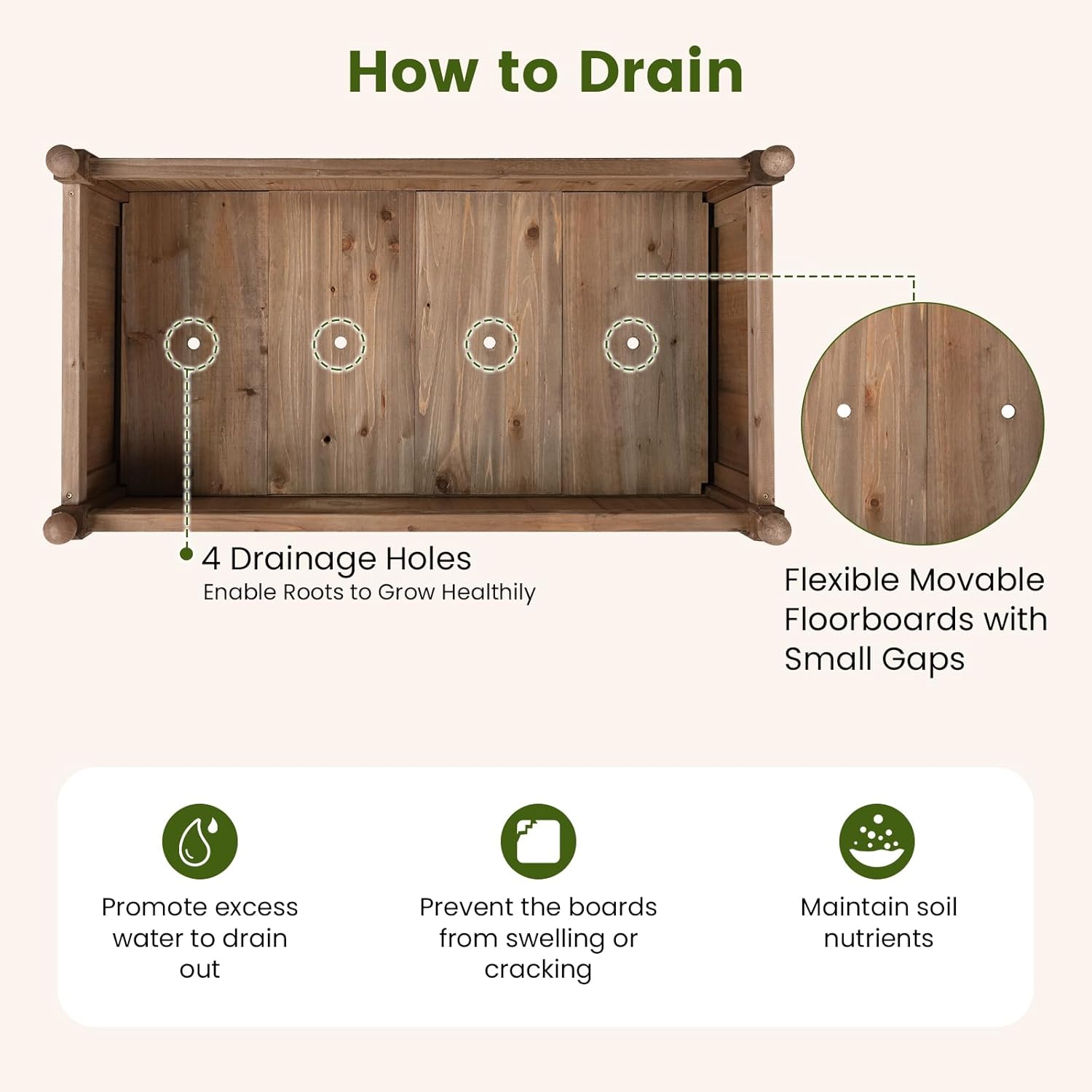 • [Multi-scene Application]: Featuring rustic finish, the wood planting bed looks elegant. Moreover, the wooden planter with elegant decorative corners will add its beauty, making it seamlessly complement with your garden, backyard and patio.