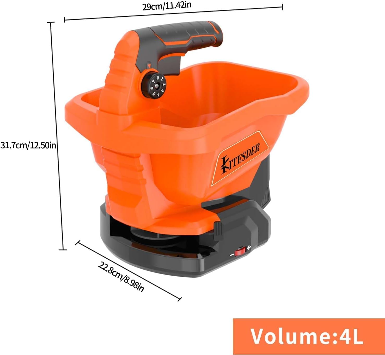 • 【High Capacity and Portability】With a 4L capacity and ergonomic design, this handheld broadcast spreader ensures convenience while carrying and using it, perfect for small or large lawns.