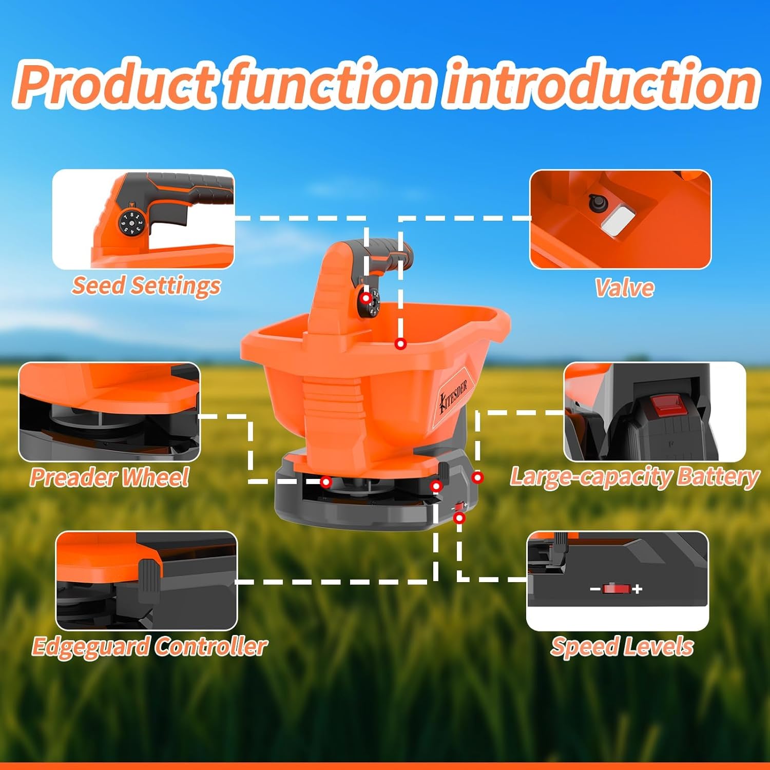 Battery Powered Seed Spreader, Fertilizer Spreader, Lightweight, Spreaders for Lawns, Broadcast Spreader, 8 Seed Settings & 6 Speed Levels, Spreader for Grass Seed, Fertilizer & Ice Melt