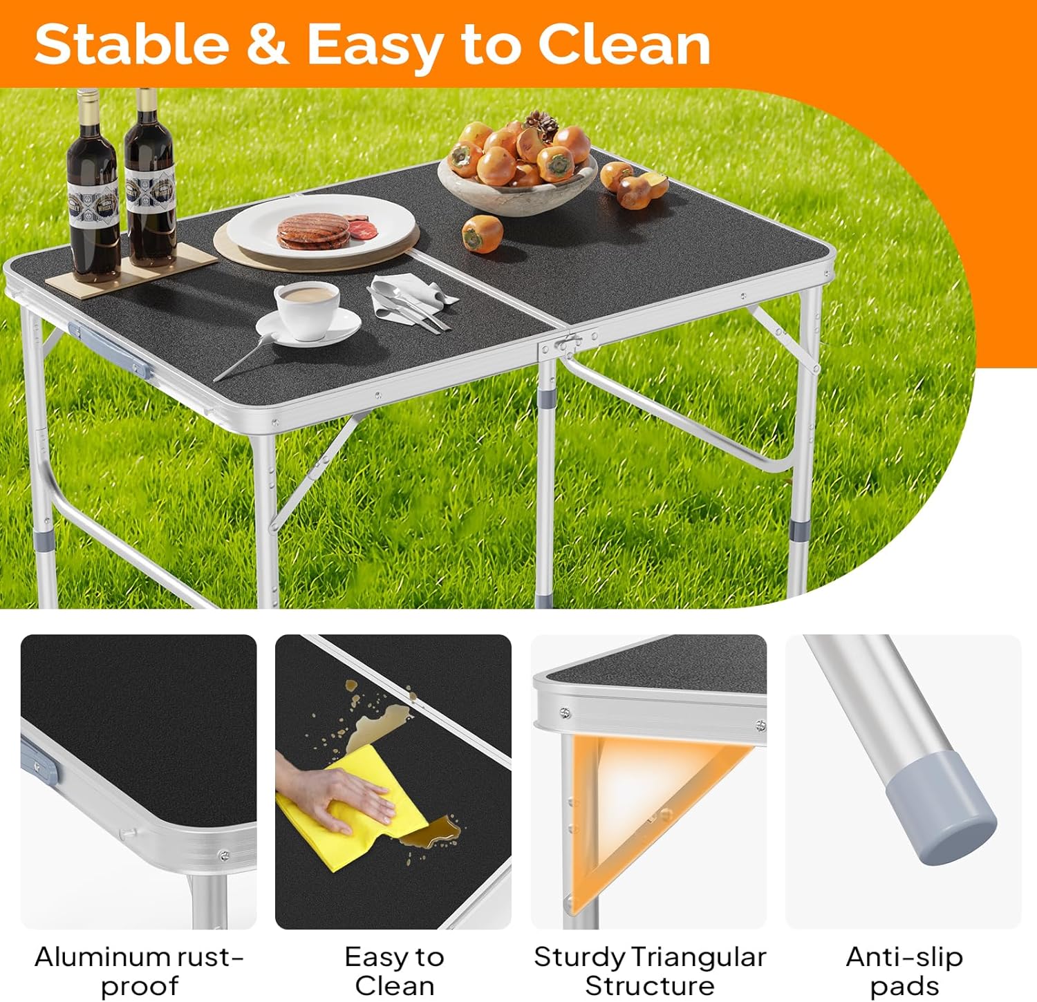 VINGLI 3FT Small Camping Table Adjustable Height Aluminum Folding Table for Picnic Party BBQ, Plastic RV Suitcase Table Portable Lightweight Fold Up Utility Outdoor Tables with Carrying Handle …