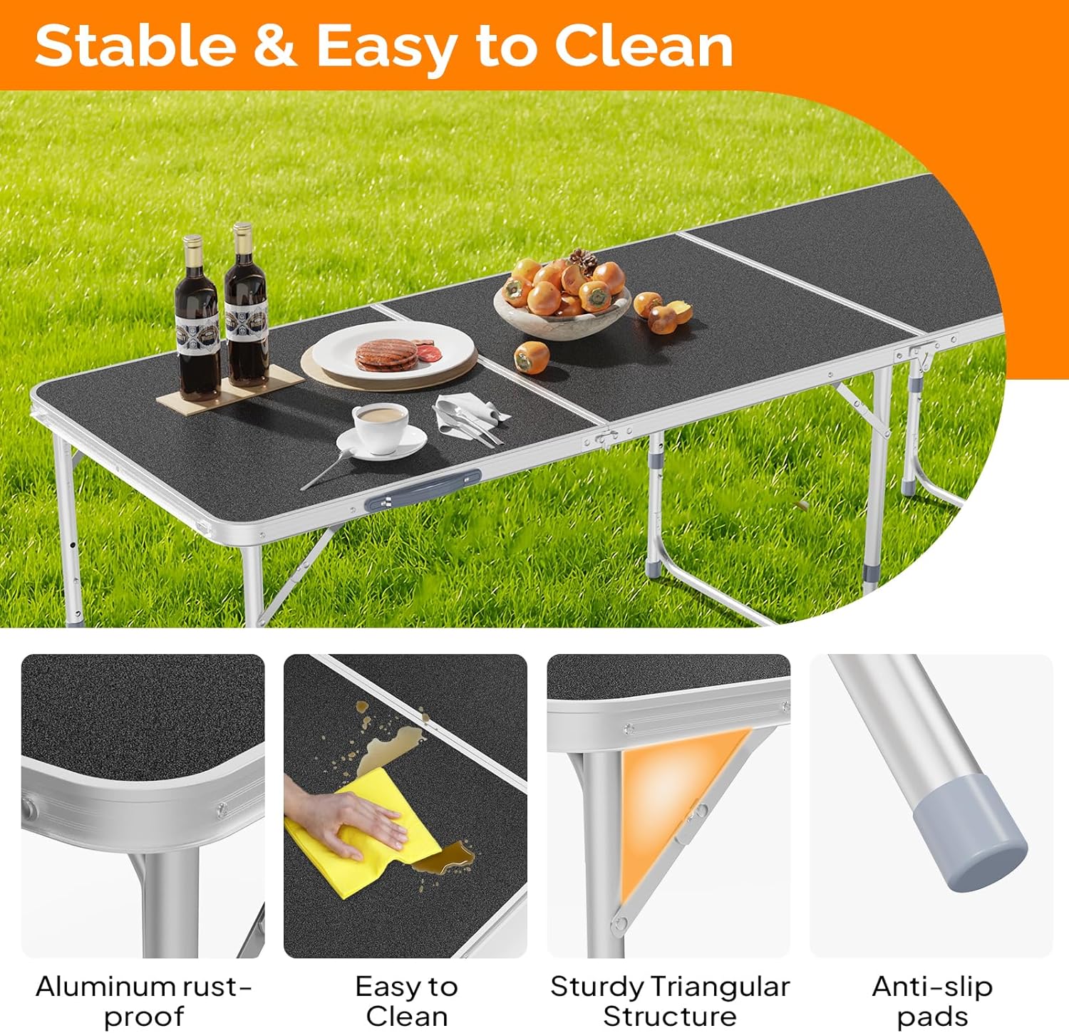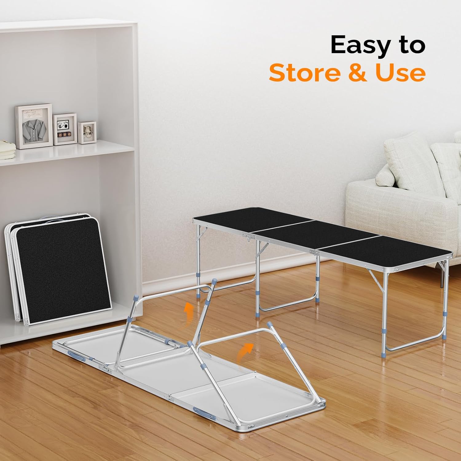 • 6 FEET TABLETOP: The tabletop is 71"*23.8". Constructed of medium density fiberboard, this table is easy to clean remove stains only by swiping.