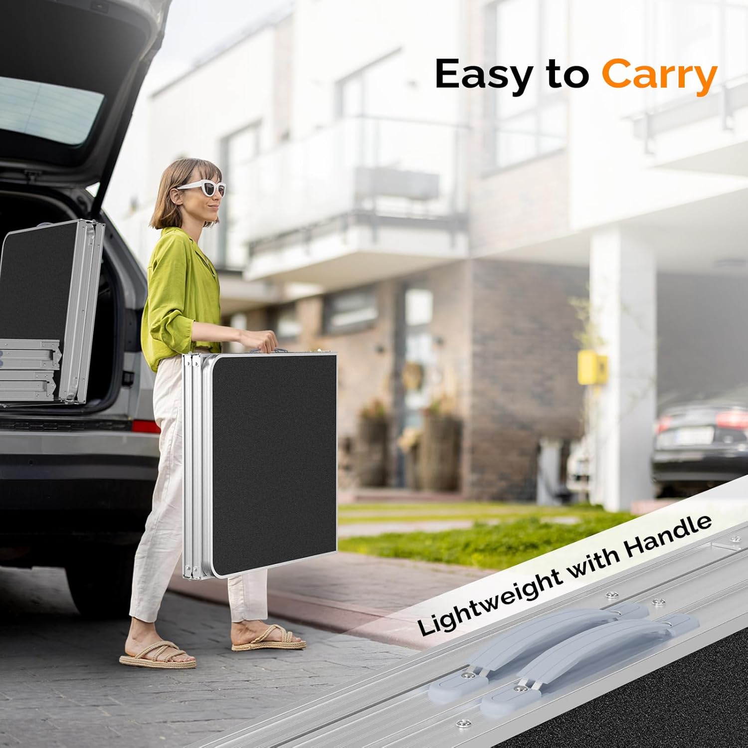 • LIGHTWEIGHT&FOLDABLE: MDF tabletop and aluminum feet make its weight just 14.3 lbs. The feet could be set off and tabletop could fold in half, foldable like suitcase(23.8"*23.8"). It is convenient to carry it to anywhere with its soft carry handle.