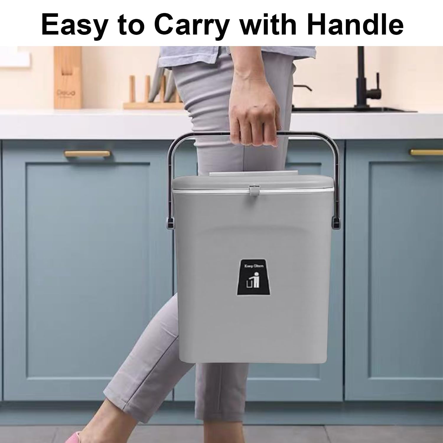 LALASTAR Kitchen Compost Bin for Countertop or Under Sink, Hanging Small Trash Can with Lid for RV/Office/Bedroom/Dorm, Mountable Indoor Compost Bucket, 9L/2.4 Gal, Grey