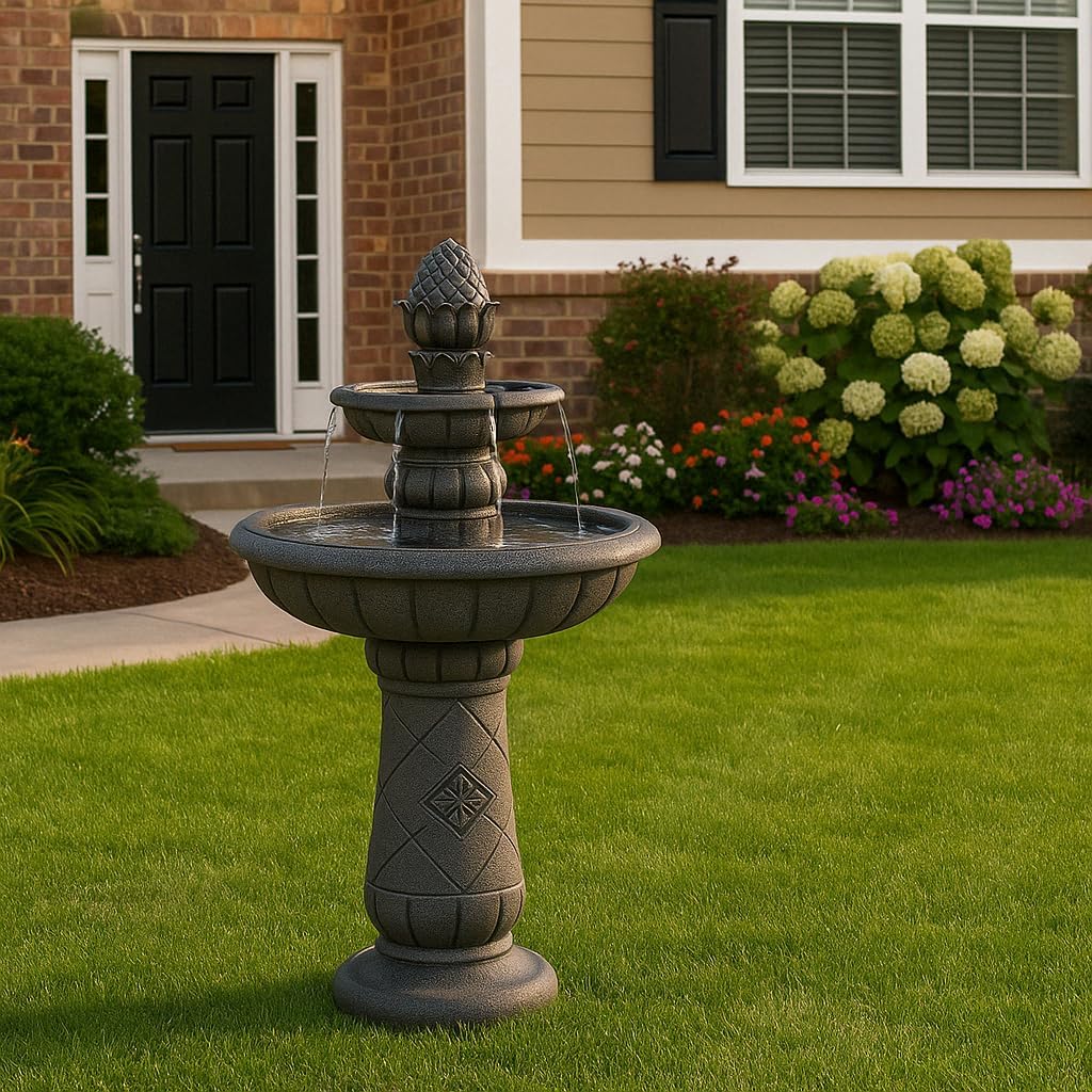 • RELAXING OUTDOOR WATER FEATURE: Elegant pineapple-style tiered fountain creates a peaceful waterfall effect that enhances your garden, patio, backyard, or landscaping with calming ambiance.