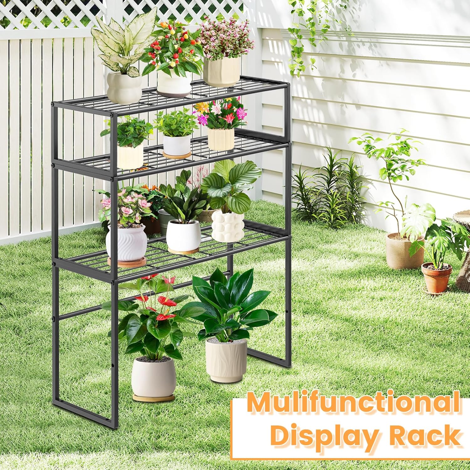 • 【Multi-function Use】 The metal plant stand is stackable & scalable. you can adjust the height and number of layers according to your needs. Meet various needs, the tiered plant stand is suitable for indoor and outdoor use, garden, balcony and other scenes. It can be used as a plant display stand, flower pot stand, decorative stand, storage rack, etc.