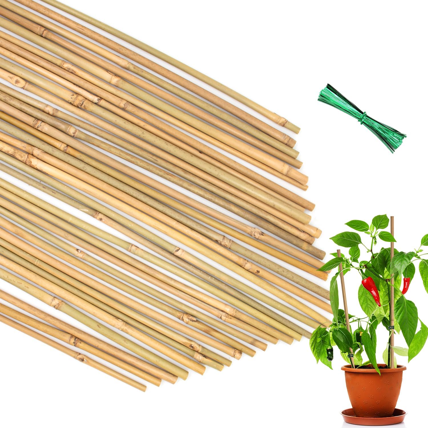 • Great Value Set with Accessories:Includes 35PCS natural bamboo stakes (18 inches long, 0.23–0.3 inches in diameter) and a 40P plant tiebacks—everything you need to support early plant growth. If you have any questions or issues, our team is here to assist you promptly.