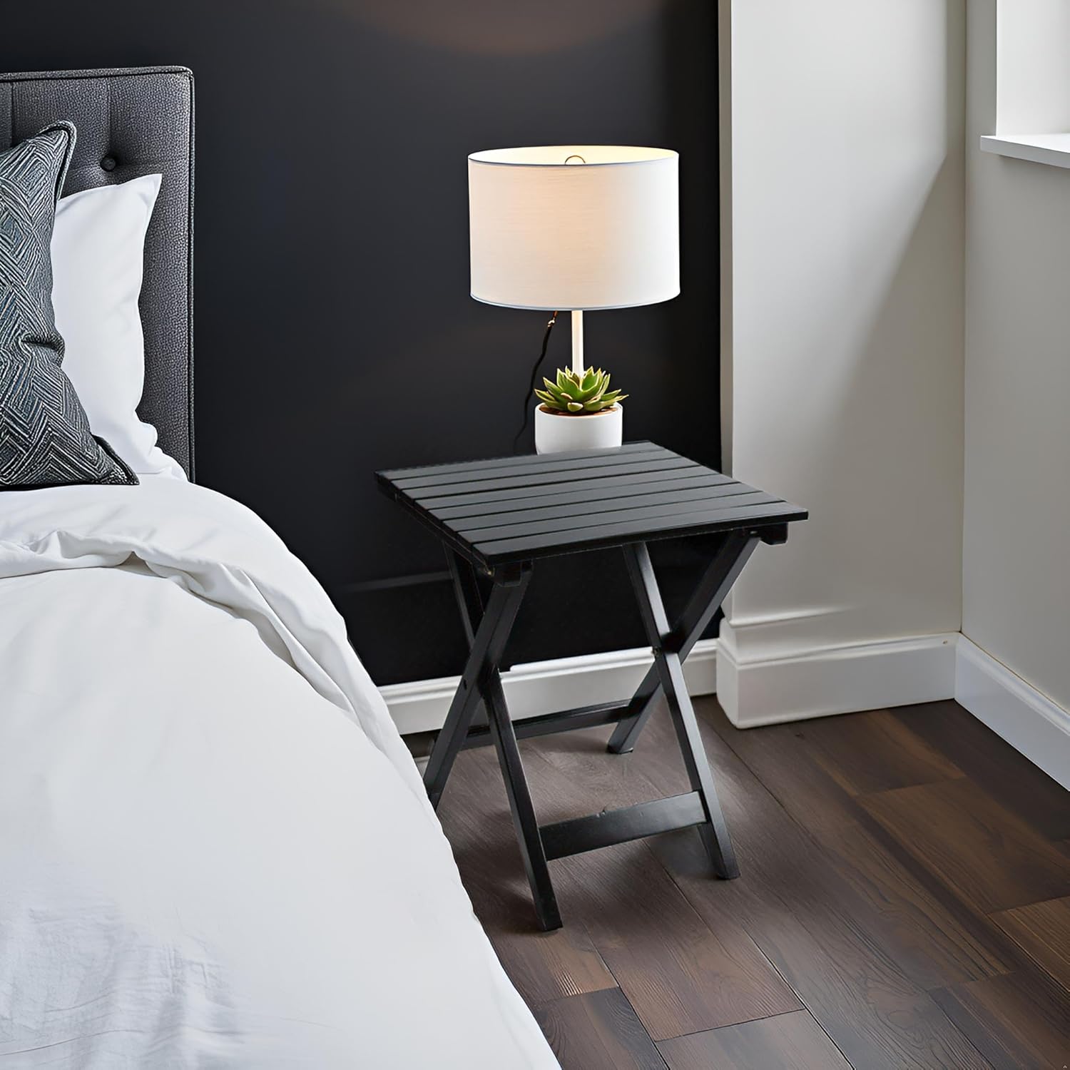 Small Wood End Square Table Outdoor Patio Side Folding Table Coffee Furniture for Living Room, Bedroom, Plant Stand, Camping Portable Black