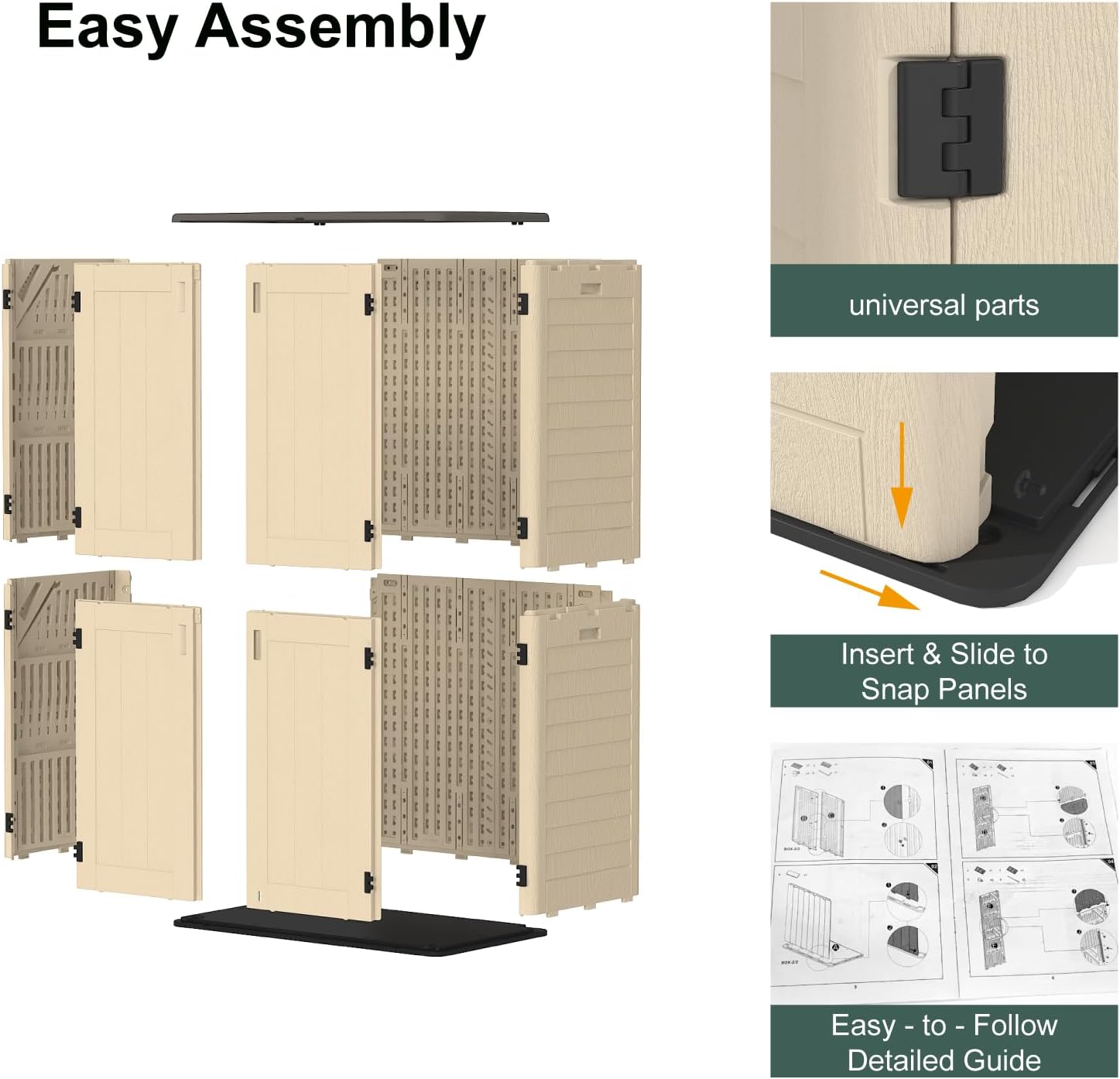 • Secure & Stylish Outdoor Solution: Features a lockable (padlock not included) double-door design for added security and a sleek khaki finish that blends naturally with outdoor surroundings. Perfect as a waterproof outdoor closet for tools, bikes, or holiday decorations.