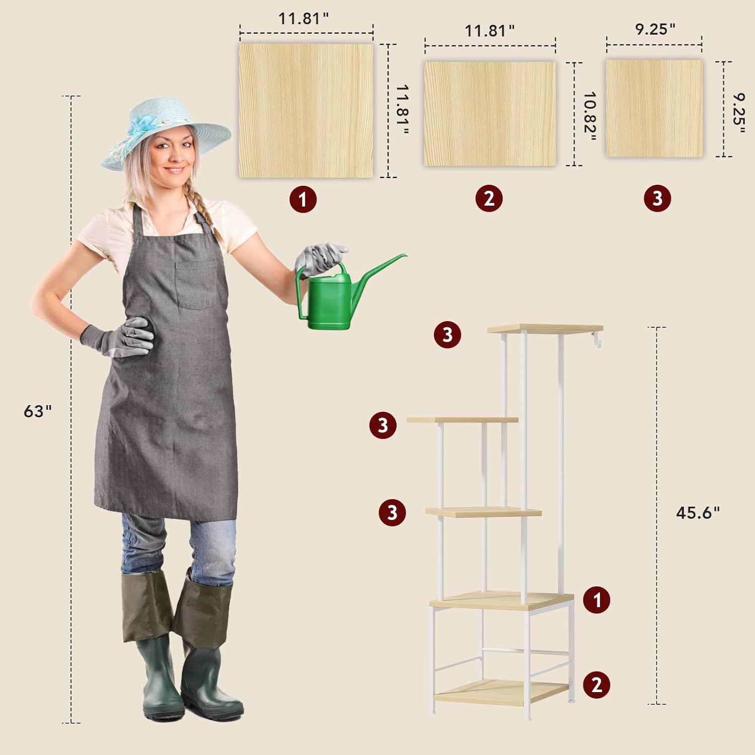 • [Spacious 5 Tiers] This tiered plant stand offers six levels of storage, allowing you to showcase a variety of plants in different heights and styles. The bottom tier features a protective railing to secure pots, while the middle tier includes a side plant holder hook, perfect for hanging baskets. Whether you’re decorating a plant rack indoor or adding greenery to a cozy corner, this stand provides ample space without taking up too much room, making it a must-have for corner plant stands for indoor plants
