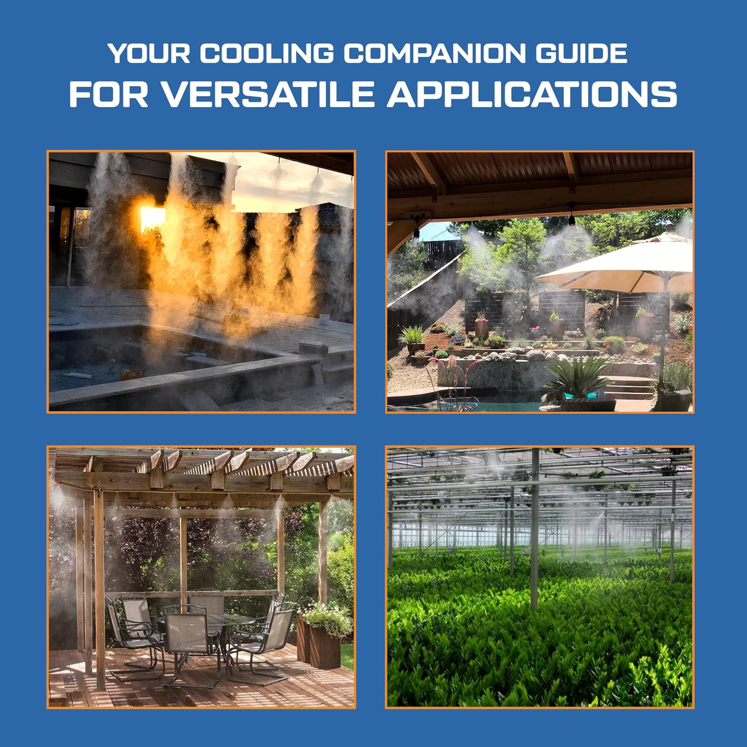 • Versatile Colling and Irrigation: You can use our outdoor misters for patio cooling for backyard patio control, keeps guests cool at birthday parties/family gatherings, and increase the comfort while reading, napping, or lounging. It can also be used as a misting system for maintaining humidity and preventing drying out in patio-adjacent garden beds.
