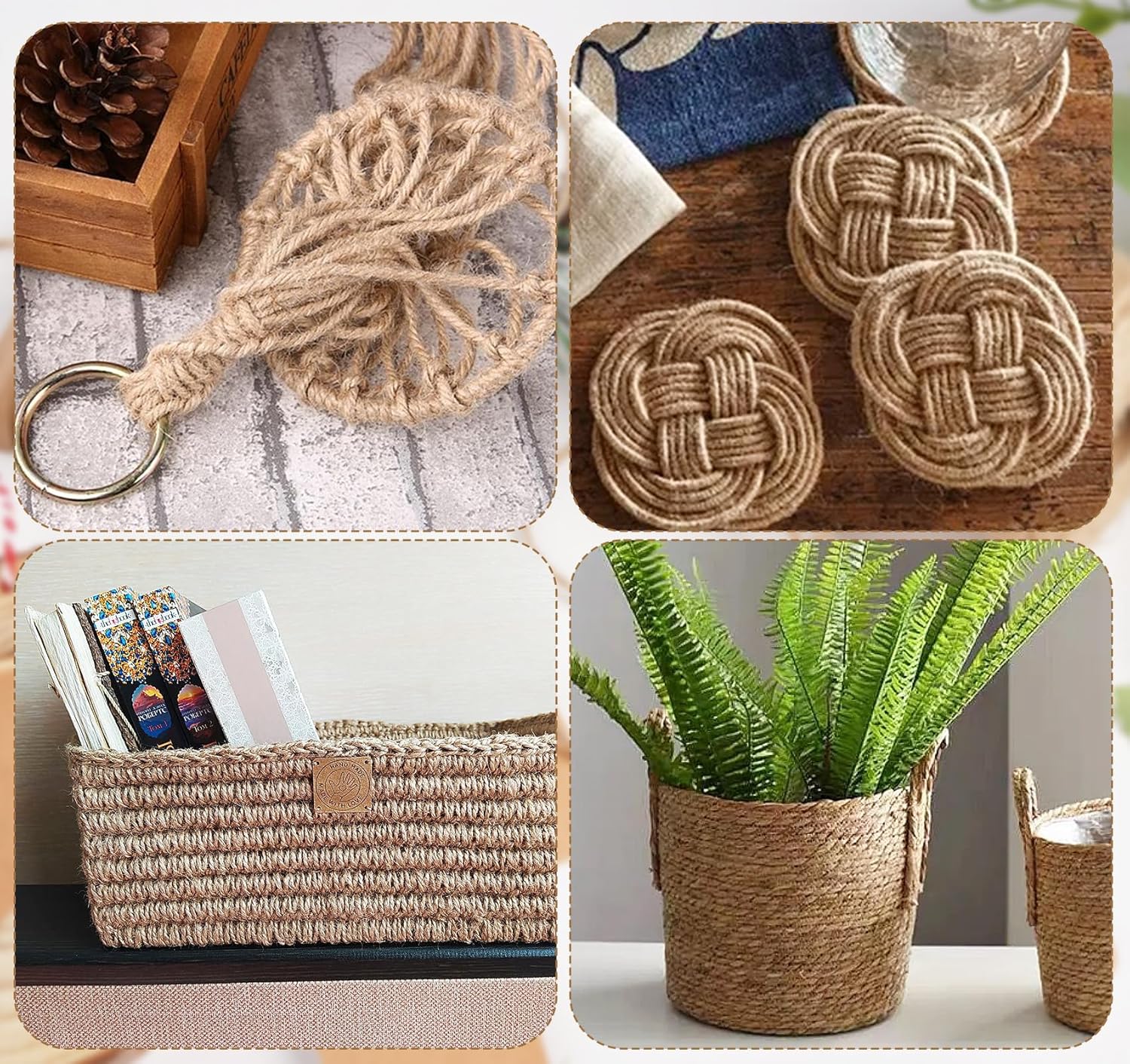 • Natural Jute - Made from pure natural jute fibres, garden twine twisted from four strands of jute fibres, suitable for craft projects, packaging materials, gardening applications, weaving plant hangers, repairing cat scratchers, or home decor, creating handmade rustic-style decor.