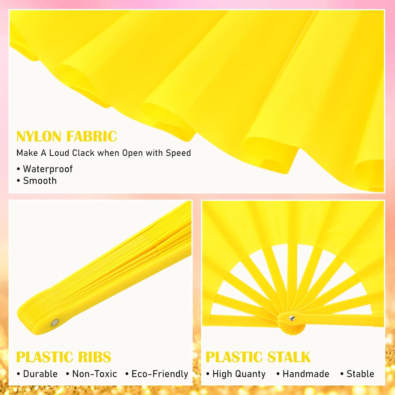 • Material and Measurement: made of quality plastic and pink and yellow nylon cloth, lightweight and sturdy fabric, and each fan measures approx. 13.4 x 25 inches/ 34 x 63.5 cm (L x W, unfold state)