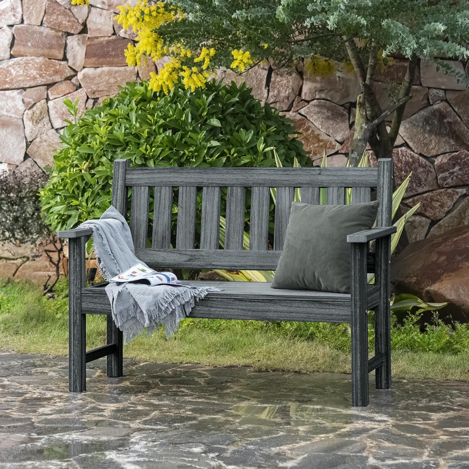 Outdoor Bench, 2-Person Garden Bench, Poly Lumber Patio Bench for Outdoors, Porch, and Park (Dark Grey)