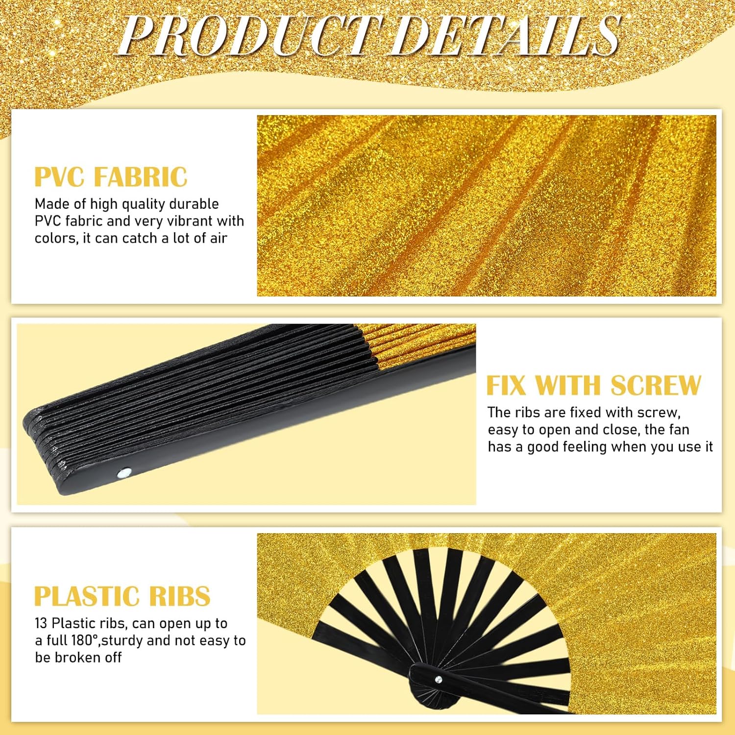 Maitys 2 Packs Large Clap Fans for Line Dancing Large Chinese Folding Hand Fans for Men and Women, Festival, Tai Ji, Kungfu, Martial Art, Gifts (Glitter Green and Gold)