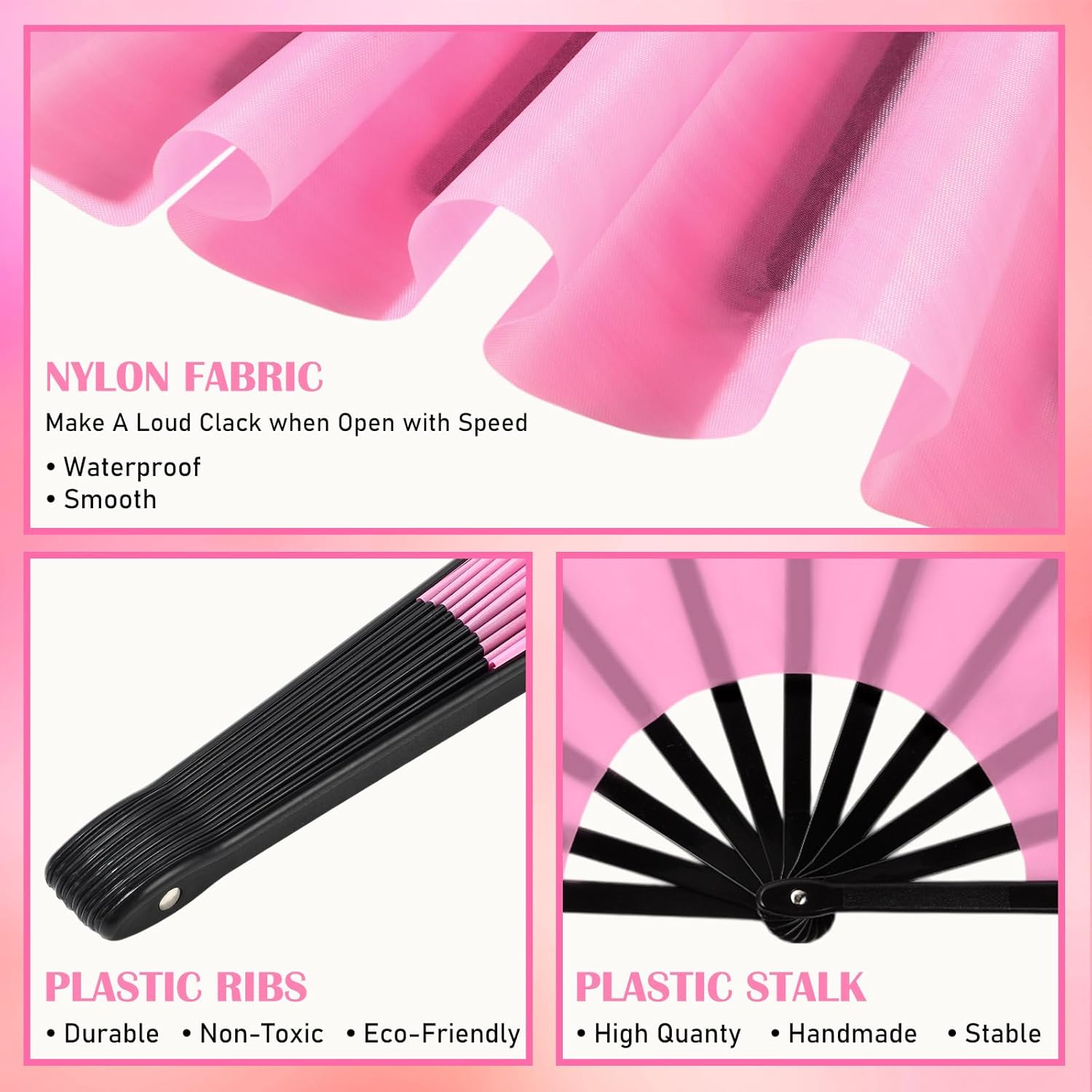 • Material and Measurement: made of quality plastic and pink nylon cloth, lightweight and sturdy fabric, and each fan measures approx. 13.4 x 25 inches/ 34 x 63.5 cm (L x W, unfold state)