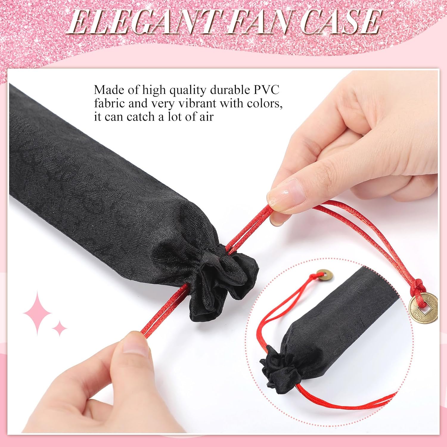 Maitys 2 Packs Large Clap Fans for Line Dancing Large Chinese Folding Hand Fans for Men and Women, Festival, Tai Ji, Kungfu, Martial Art, Gifts (Glitter Black and Pink)