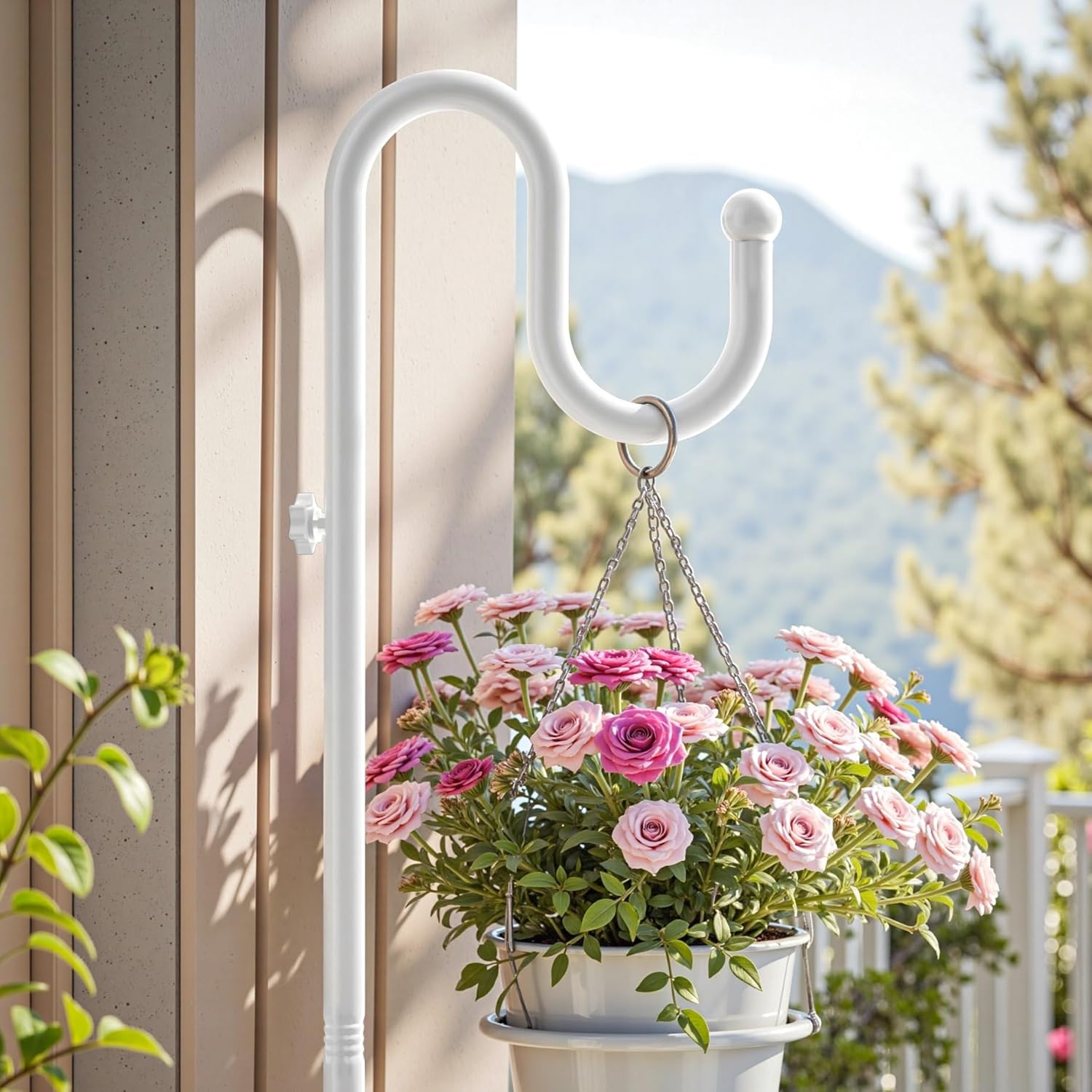 • Elegant and Decorative: With smooth, rounded curves on both the base and hook, this shepherd’s hook is not only functional but also a stylish addition to your space. Perfect for home decor and blends seamlessly into any setting.